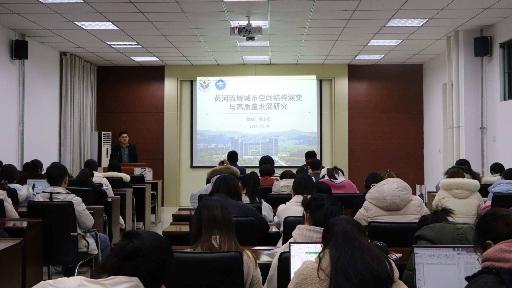 12月1日,学院于文澜楼G210报告厅举办题为“黄河流域城市空间结构演变与高质量发展研究”的学术讲座。本次讲座由地理与环境学院辅导员唐永超担任主讲人,学院研究生兼职辅导员亓广志主持,近百名研究生参加此次讲座。