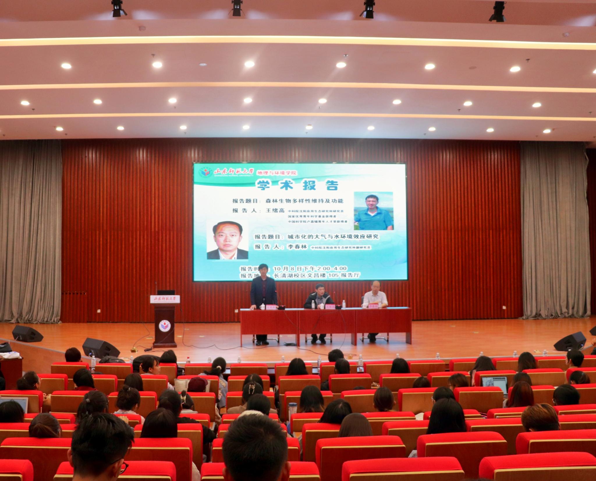 为进一步加大学院对外交流力度,开拓师生学术视野,10月8日下午,学院于文昌楼105报告厅举办了《森林生物多样性维持及功能》、《城市化的大气与水环境效应研究》学术报告,本次讲座由中科院沈阳应用生态研究所王绪高、李春林研究员担任主讲人,院长王成新教授主持,学院党委书记钟秀芳及部分教师、学生共同到场学习交流。