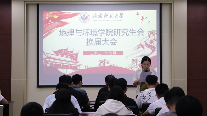9月28日,地理与环境学院于长清湖校区文澜楼G210报告厅举办研究生会换届大会。学院党委副书记李山峰,学工办主任、团委书记李妮娜,团委老师欧阳德龙、唐永超,院学生会执行主席王志豪应邀出席会议,第十四届研究生会主席团成员和第十五届研究生会全体成员参加会议,会议由研究生辅导员高宝棣主持。