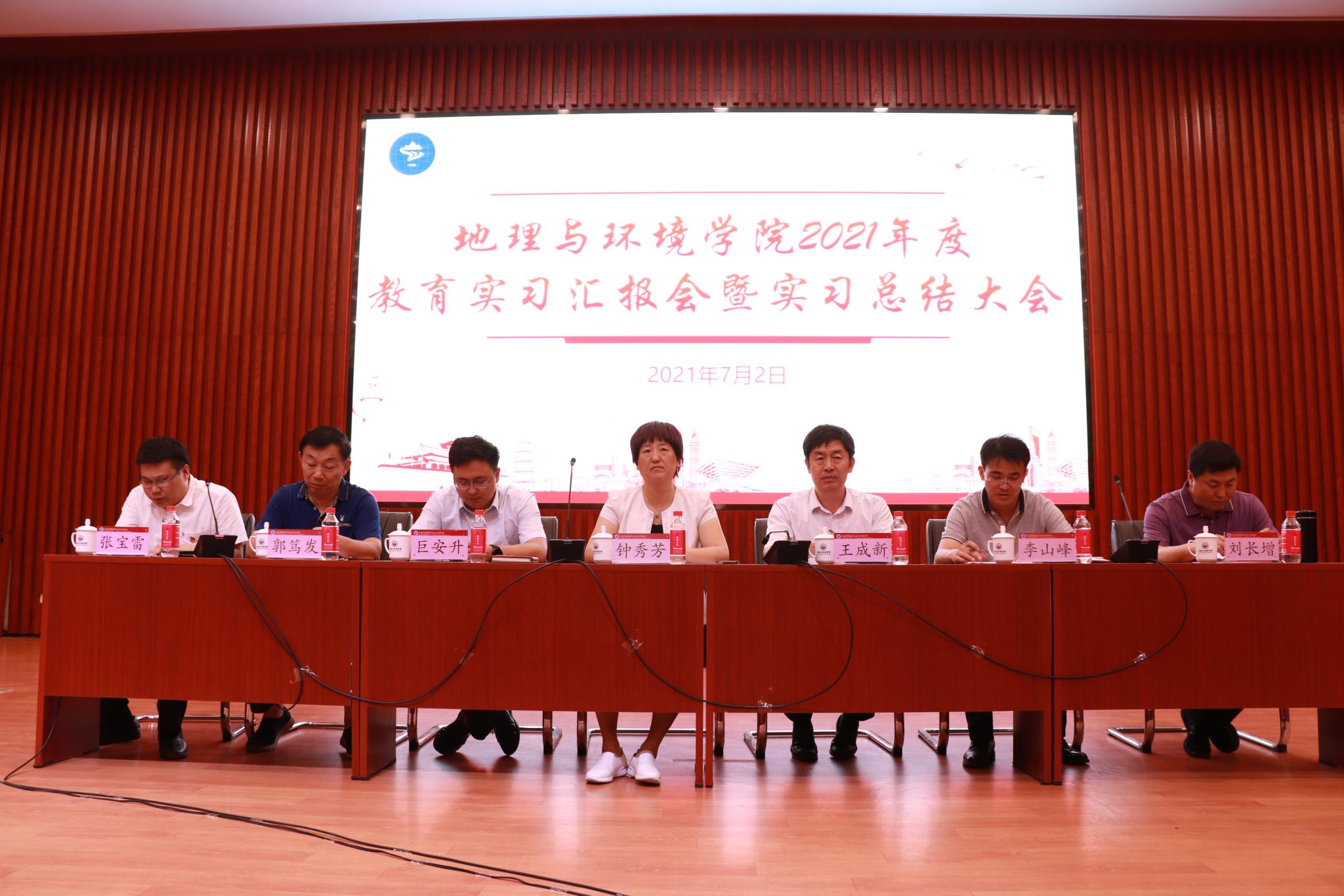 7月2日下午,地理与环境学院在长清湖校区文昌楼学术报告厅召开2021年度教育实习汇报会暨实习总结大会。学校教务处实践科主任巨安升受邀出席会议,学院党委书记钟秀芳,院长王成新,党委副书记李山峰,副院长郭笃发,院长助理张宝雷,教育实习工作负责人刘长增,实习指导教师以及2018级师范类专业学生参与此次会议。