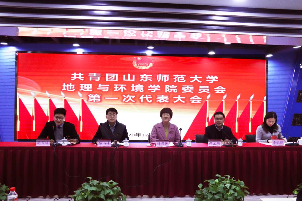 12月10日,山东师范大学地理与环境学院第一次团员代表大会、学生代表大会、研究生代表大会在图书馆负一层隆重召开。学院党委书记钟秀芳,学院党委副书记李山峰,校团委副书记郑金鹏,学院团委书记、学工办主任李妮娜及我院全体正式代表出席会议。