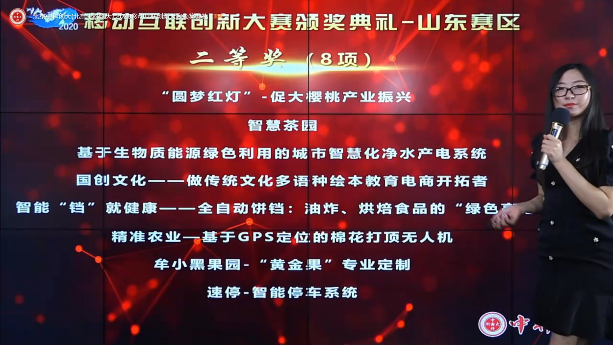 在赛前的备战过程中,指导老师进行细致、有针对性的悉心指导,各参赛队员克服因疫情带来的困难,反复多次修改完善PPT内容,功夫不负有心人,赛前的一切准备都是为在山东赛区决赛中的脱颖而出铺桥搭路。受疫情影响,本次山东赛区决赛通过钉钉会议模式以线上的方式开展,决赛共有33支队伍参与角逐,不同以往的竞赛方式,不变的激烈角逐。比赛以路演的形式开展,在经过PPT展示及答辩环节的比拼过后,由评审老师综合参赛团队项目的创新性、可行性,商业性以及团队合作的情况,进行打分评审。