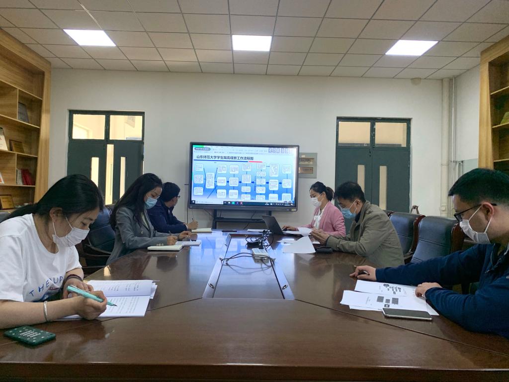 此次学习围绕着学生工作部下发的《学生返校注意事项及应对措施》《突发新冠肺炎疫情应急处置办法(辅导员篇)》《隔离观察流程图》及鲁教疫控组字[2020]30号文件进行。首先,李妮娜带领全体人员学习了文件,要求全体辅导员将文件放到案边随时阅读,做到对其中的内容了然于心。各年级辅导员,根据分管年级实际情况,交流了目前同学们“健康码”申请情况以及居家学习、生活相关情况。