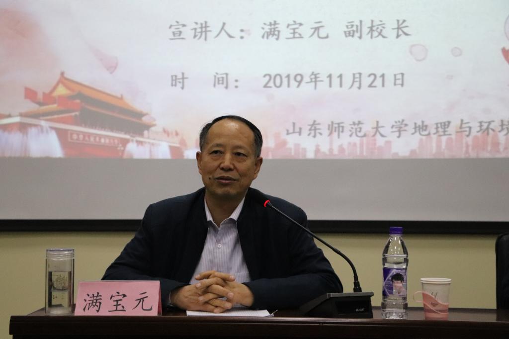 11月21日下午,我院于长清湖校区文澜楼G210报告厅举办学习贯彻党的十九届四中全会精神宣讲报告会。院长王成新主持,副校长满宝元做贯彻党十九届四中全会精神宣讲报告,学院全体教工及部分学生党员共百余人聆听宣讲。