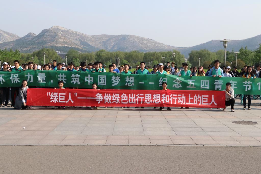 上午八点半,活动正式拉开帷幕,所有参与人员在志愿者的指挥和帮助下井然有序地沿原定路线骑行,队伍整齐划一,沉稳应对十字路口车流拥挤、上坡难行下坡急促等情况,经过近两个小时的骑行,全体同学安全抵达长清区清悦园广场。短暂休息过后,陈光对同学们的积极参与和大力支持表示感谢,并对此次活动的宗旨和任务做出阐述。紧接着,长清区政协第九届委员会王慧慧高度赞扬了同学们将环保意识转化为实际行动的行为以及为环保事业所做的贡献。随后,同学们向广场周围市民发放环保手册并宣传环保观念,与市民们就家庭污水排放、垃圾分类等问题进行了深入的交流,而且通过提问世界水日等问题进一步普及环保知识。参与活动的市民们很是赞同同学们这种积极践行环保理念的行为,并纷纷表示会做出行动,让环保观念深入生活。宣传结束后,同学们积极在“凝聚环保力量,共筑中国梦想——纪念五四青年节100周年”横幅上签字留念,以此表明将环保进行到底的决心。签字后,陈光带领同学们进行环保宣誓,呼吁大家“抵制污染、保护环境”,为环保建设贡献自己的一份力量。最后,同学们踏上新的路线返程回到校园,虽然人数多、路程长、任务艰巨,但经过前期周密的准备工作和骑行过程中志愿者们的帮助,此次活动至此圆满结束。