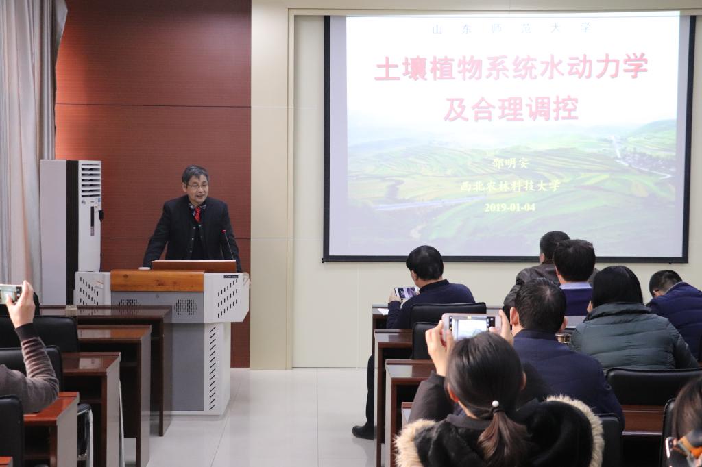 邵明安院士在文澜楼地理与环境学院学术报告厅,为广大师生作了题为“土壤植物系统水动力学及合理调控”的学术报告。报告指出,土壤-植物系统水动力及调控理论是干旱半干旱地区农业与生态环境的重大科学问题,对黄土高原生态和社会发展至关重要。邵院士结合自己的求学、科研和教学经历,从土壤中水及溶质迁移规律、土壤-植物系统水动力学及SPAC模型、土壤-植物系统水运移优化调控、小流域土壤物理特性的空间变异及土壤水分的植被承载力等方面介绍了土壤植物系统水动力学及合理调控的研究进展。报告深入浅出,为在座广大师生带来了极大启迪。