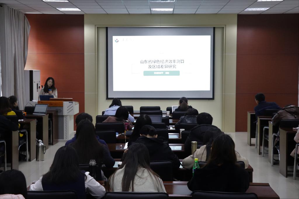 报告会上,孙青就如何实现土地利用效益和新型城镇化的协调发展问题,对山东半岛城市群土地利用效益和新型城镇化水平的耦合协调、综合协调度和相对发展度的研究作了详细解说。王茜从环境保护的专业角度,讲解了MCs与PP1的试验研究,对社会经济与可持续发展进行了讨论。王硕利用GIS空间分析和统计功能,以沂河流域为例探讨了土壤可蚀性K值的空间分布特征及其与土壤类型、土地利用等影响因子之间的相互关系。刘婕通过熵权法和数据包络分析法,对山东省17个地级市进行了环境污染综合指数和绿色经济效率的测算,并探索了其区域差异。