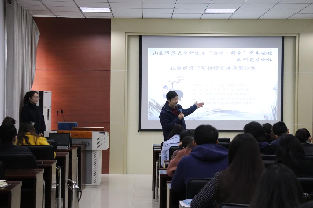 11月12日上午,由党委研究生工作部主办,地理与环境学院承办的研究生“治学·修身”学术论坛在长清湖校区文澜楼G210报告厅举行。孙青、王茜、王硕和刘婕四位研究生主讲人,围绕“社会经济与可持续发展”,分别从可持续发展与土地利用、可持续发展与环境保护等角度开展讨论。地理与环境学院院长、博士生导师王成新教授、研究生辅导员高宝棣、人口、资源与环境经济学博士黄彩虹出席论坛并进行点评,学院60余名研究生参与了此次报告。