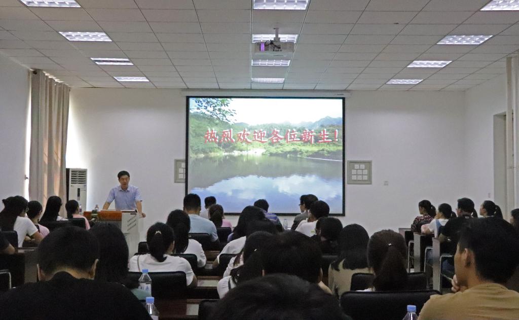 9月2日,在所有新生报到结束后的第一时间,举行了新生见面会,2018级全体研究生参加会议,由研究生辅导员高宝棣主讲。见面会开始之前,现场循环播放《开学了,总书记有话对你说》的视频短片,内容主要是习近平十八大以来在祖国各地高校考察时与师生交流的讲话,鼓励新入学的研究生通过学习习近平总书记系列重要讲话,提高政治意识,端正学习态度。在新生见面会上,高宝棣首先对2018级研究生新生的到来表示诚挚和热烈的欢迎,介绍了包括学院发展历程、培养环节、科研成果、党团建设、奖优助贷、2018届优秀毕业生等基本情况,帮助新生全方位学院情况。最后高宝棣结合个人经历,详细介绍了学院研究生的培养管理情况和纪律要求,期望新生能尽快了解学习要求、适应学习环境、树立学习目标、强化学习意识,恪守底线、远离红线,发挥作用,做好表率。