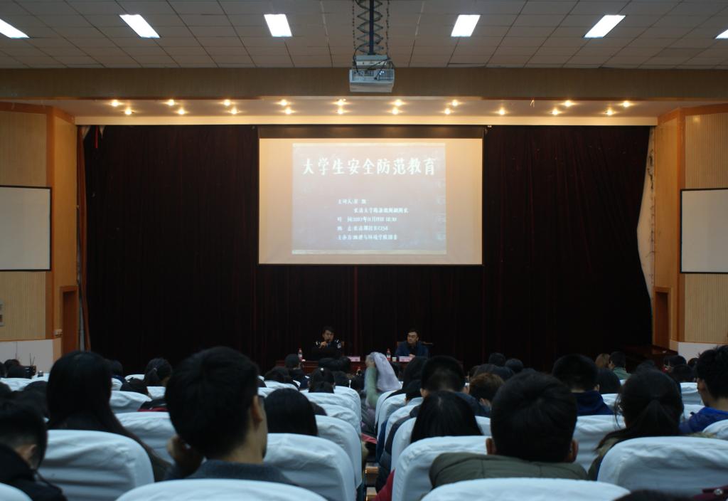 11月19日,地理与环境学院于长清湖校区综合教学楼C区154报告厅举办大学生新生入学教育系列安全防范教育讲座,旨在增强同学们的安全防范意识,提高安全防范能力。讲座由地理与环境学院团委主办,我院2017级环境科学1701班班主任徐飞担任主持人,济南市长清分局大学路派出所副所长崔凯受邀担任主讲人,济南市公安局历城分局政治部高奕和济南市公安局技术办公室孙琼作为嘉宾出席本次讲座,2017级全体同学到场。