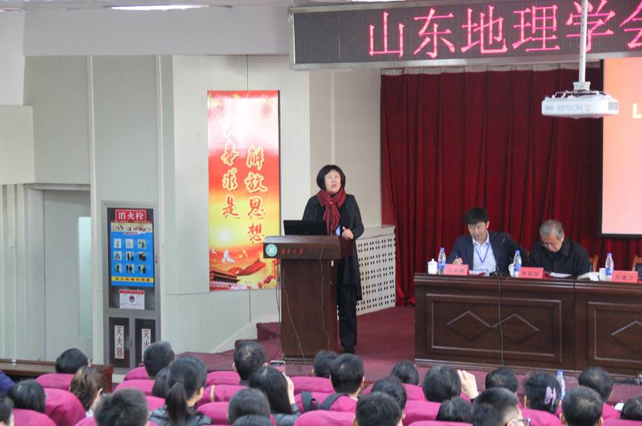 7名专家学者做了大会主题报告,山东地理学会理事长、我院博士生导师任建兰教授以“人地关系视角下我国绿色发展与生态文明建设”为主题做大会报告。与会代表围绕“滨海湿地生态与岸线演变”、“资源高效利用与环境效应”、“人地协调与绿色城镇化”、“地理信息与大数据应用”、“中学地理教育改革与创新”5个专题,在3个会场分别进行了34场分会场报告。我院20余名研究生也做了分会场报告,反响良好。