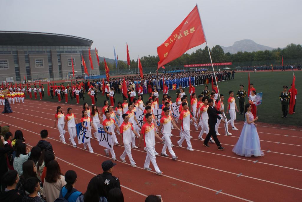 10月12日上午,伴随着激昂的乐声,山东师范大学2017年田径运动会缓缓拉开帷幕。踏着轻快的节拍,身着鲜艳的院服,我院代表方队整齐划一地走向主席台,队形的迅速变换,口号的激情昂扬,“建一流名校,展地环风采”标语生动地向全校师生展现了我院高亢的精神风貌。