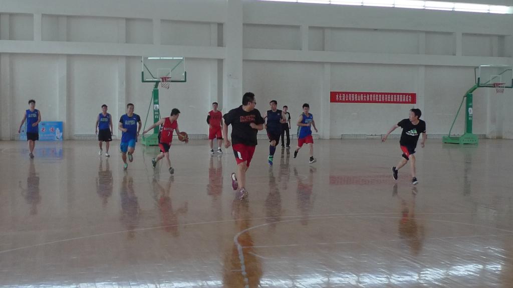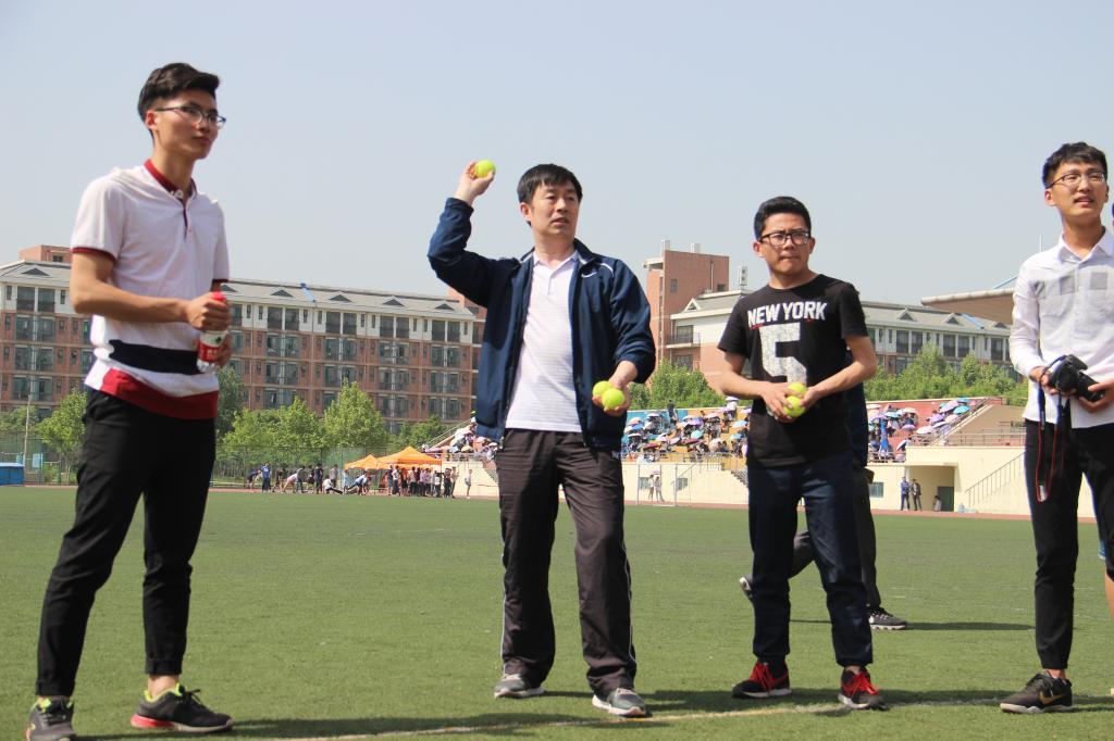 本次趣味运动会共设“羽毛球拍托网球跑”、“足球踢矿泉水瓶”、“一分钟投篮”、“一分钟跳绳”、“网球掷准”、“个人踢毽子”六个项目。上午九时比赛正式开始,各位参赛老师热情饱满,斗志昂扬,展现了良好的竞技状态。在“足球踢矿泉水瓶”项目中,王成新院长提议在场学生参与其中,与老师们组成的队伍进行比拼,场上气氛迅速活跃起来。在学生会工作人员精心组织下,经过近两个小时的比赛,各项活动在欢声笑语中圆满结束,程钰、李山峰、林旭、王成新、张英、刘玉真六位老师分别赢得了各项目的冠军。比赛期间,学院教工篮球队与学院研究生篮球队举行了紧张激烈的篮球友谊赛,为本次趣味运动会增添了亮点。