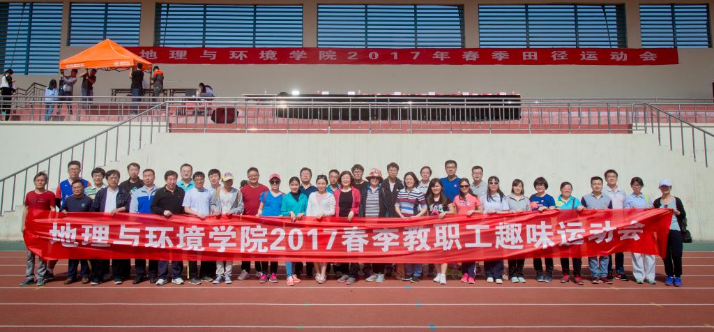 5月7日上午,地理与环境学院于长清湖校区风雨田径场成功举办教职工趣味运动会。本次运动会由学院工会主办,学院党委书记王馨、院长王成新、学院党委副书记吕洪宾、副院长宗万松等四十多位教职工参与了本次活动。