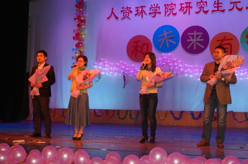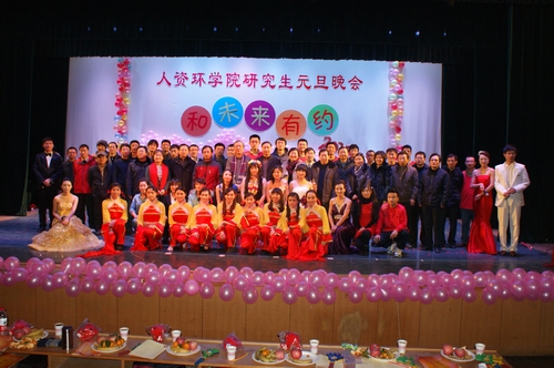 12月24日晚,人资环学院在校本部音乐厅成功举办了 “和未来有约” 2013年研究生元旦晚会。本次晚会得到了学院领导和老师们的大力支持,全院研究生和四十多位老师共同观看了演出。