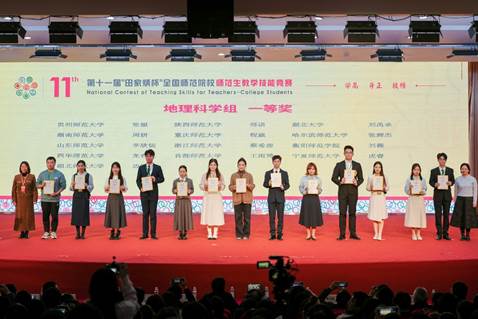 据悉,“田家炳杯”全国师范院校师范生教学技能竞赛是目前国内规模最大、层次最高、影响最广的师范生教学技能竞赛。本届比赛吸引了全国289所师范院校2345名选手参加初赛,设有13个学科组别。竞赛分为初赛和决赛两个阶段,初赛通过教学设计、课件制作、教学视频、说课等环节进行线上评审,决赛则通过教学设计、课件制作、模拟上课·板书、即席讲演等环节进行现场比拼。经初赛评审,共有178所学校564名选手入围决赛,角逐各项奖项。本次比赛共评选全国一等奖188名,其中地理组全国一等奖共13名。