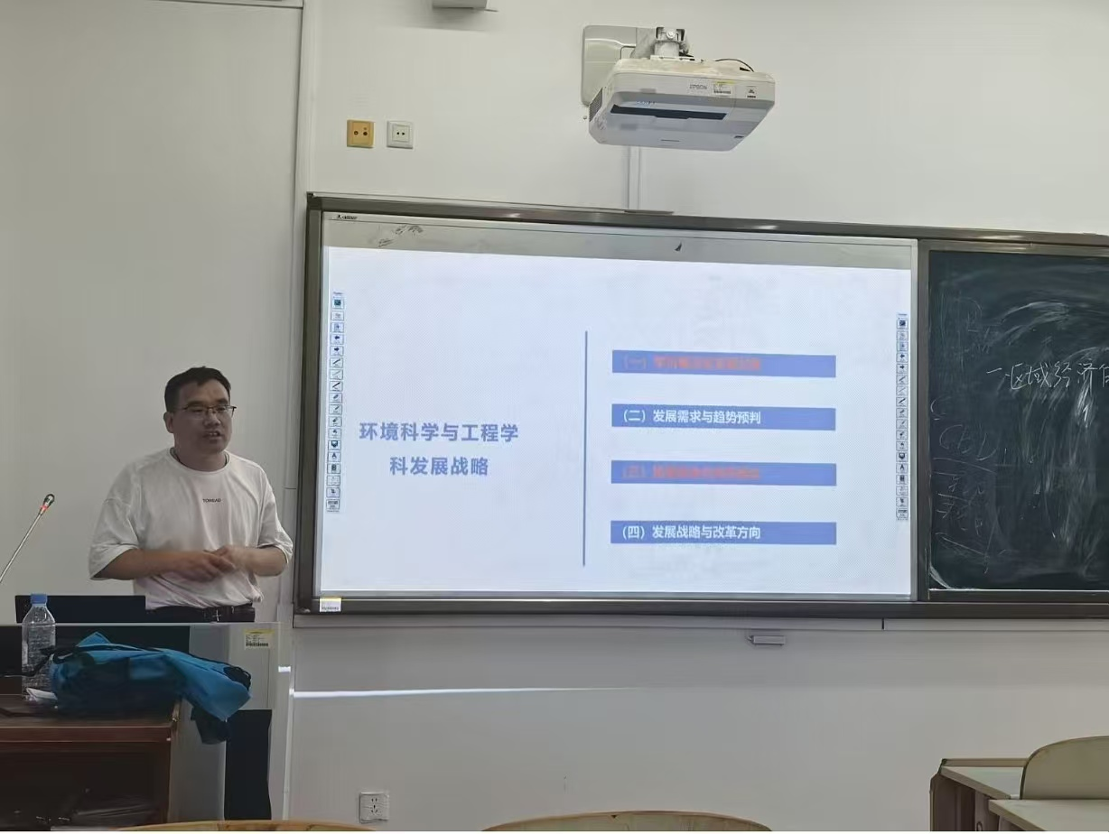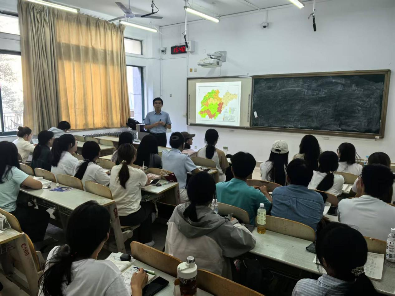 学院党委其他委员则立足学科前沿与专业建设,为不同学段学生讲授专业“赋能课”。副院长宗万松围绕“环境科学与工程学科发展战略”,紧扣国家生态文明战略部署与学院环境学科发展规划,系统解读环境化学、环境地球化学等基础领域的核心内容,引导学生认清专业价值、坚定科研志向,以所学守护生态环境。副院长张宝雷为研究生带来“见人所未见,能人所不能——地理信息科学新发展”专题课,结合学院地理信息科学专业的建设成果与发展规划,从学科关联、专业特色、就业前景等维度展现学科潜力,鼓励研究生瞄准学术前沿、勇于突破创新,为学院学科高质量发展注入新生力量。副院长程钰聚焦“经济地理学发展与时代担当”,梳理学科从区位论到全球化转型的演进脉络,阐释其破解区域发展不平衡、推动绿色转型、优化空间治理的重要作用,引导学生以专业所长服务国家空间发展战略,在学科深耕中践行师范使命。