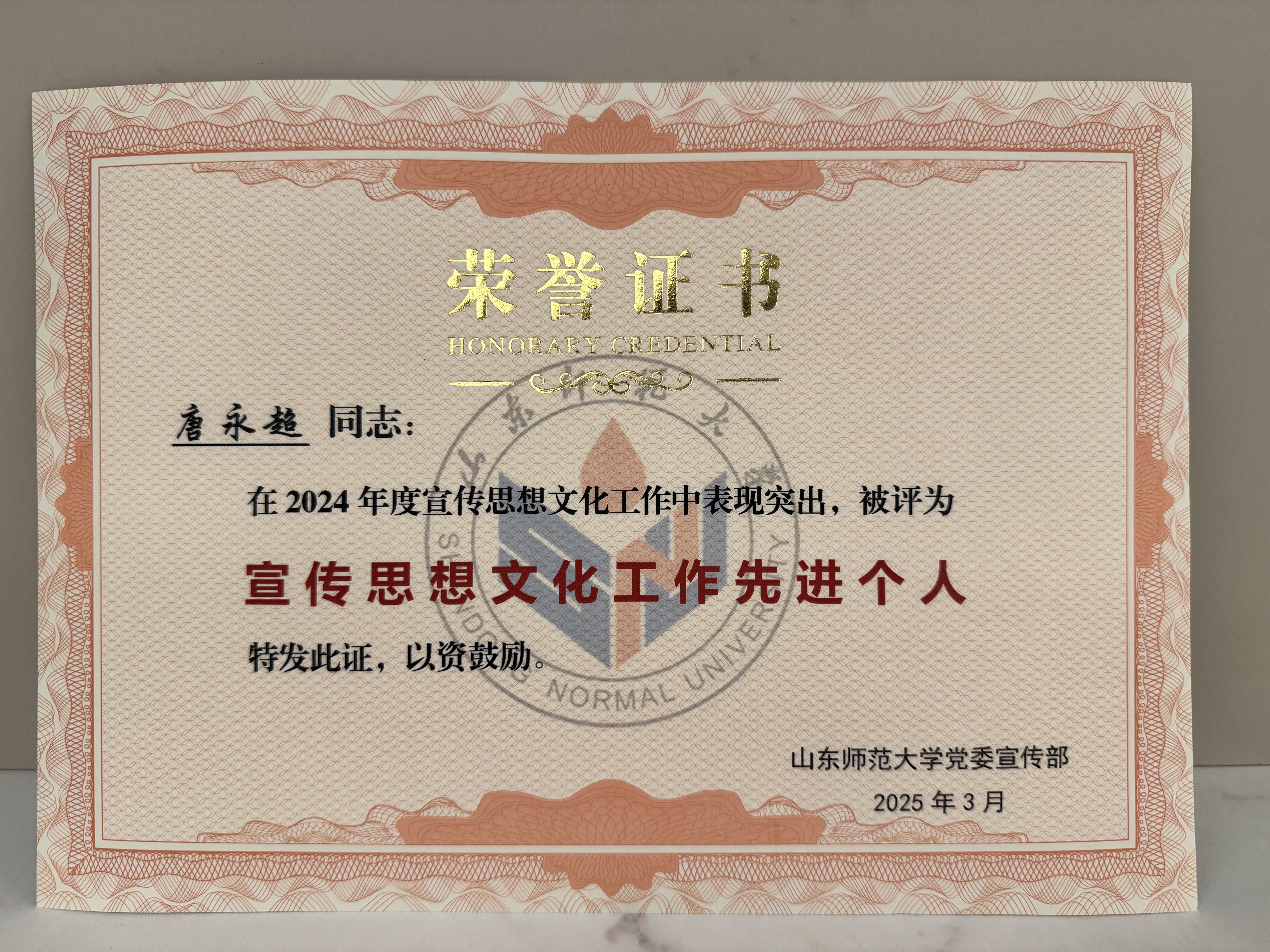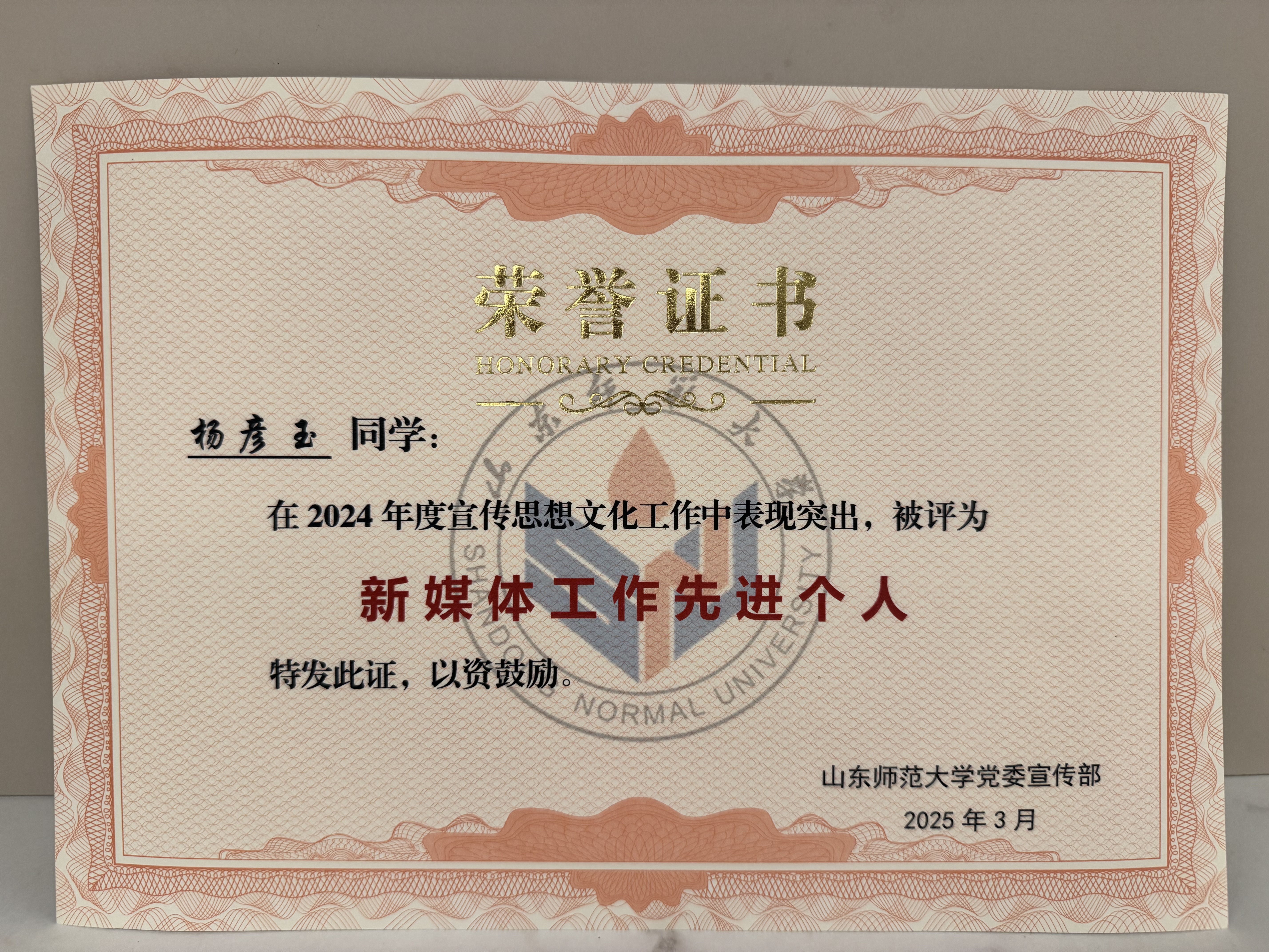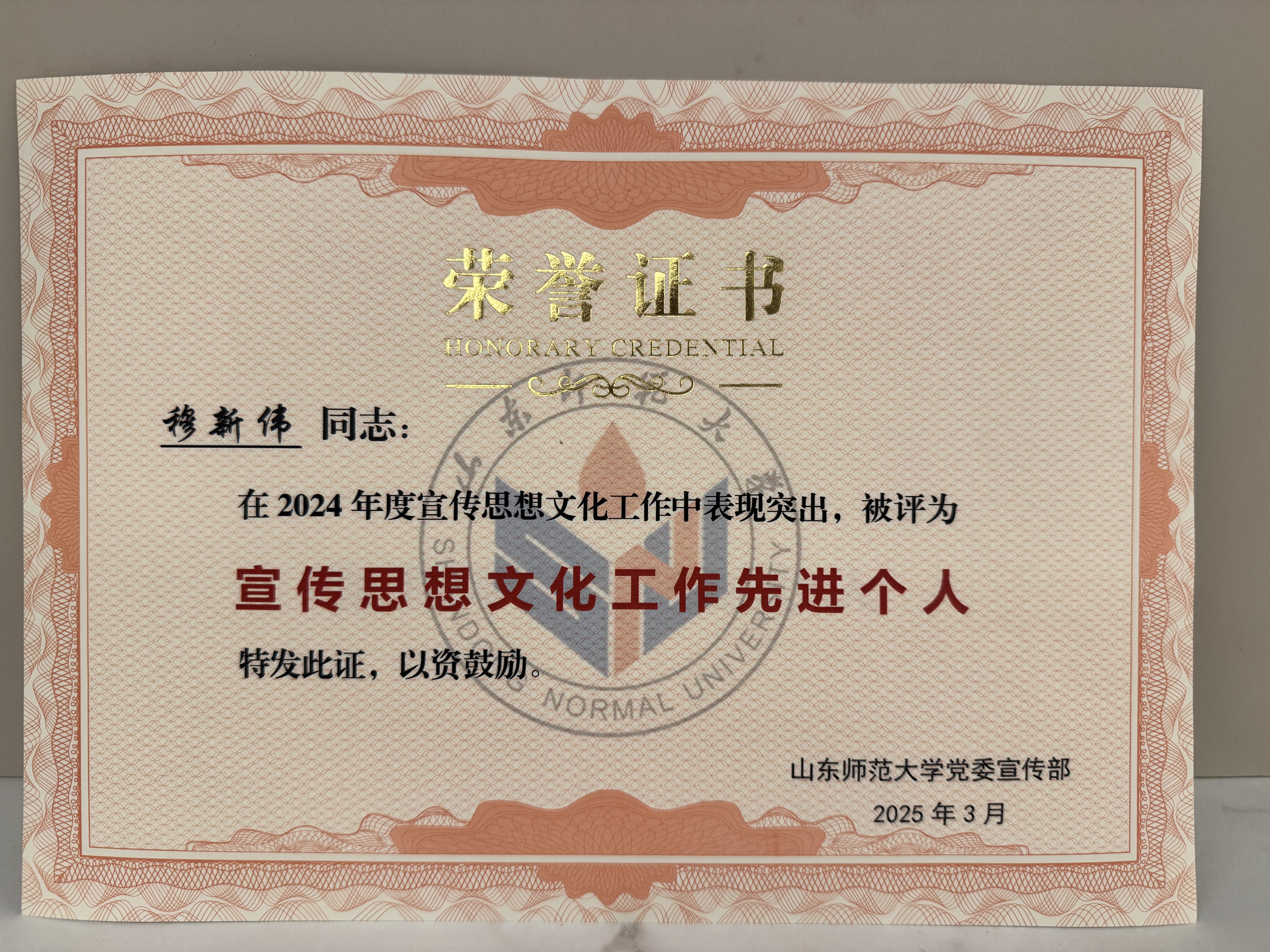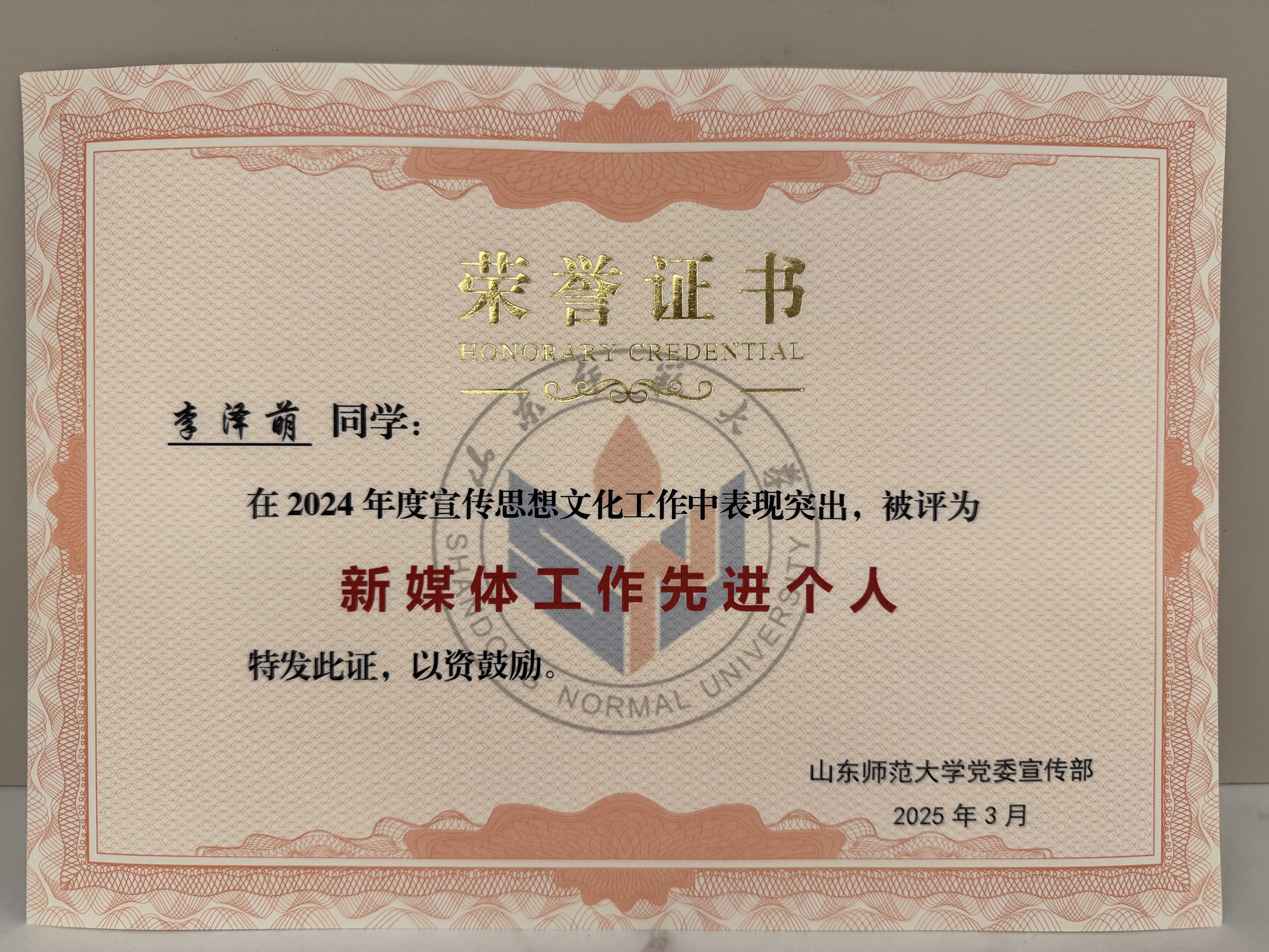 4月3日,山东师范大学2025年宣传思想文化工作会议于千佛山校区教学三楼报告厅举行,我院在表彰中荣获多项荣誉。其中,“山师地环学院”微信公众号获评“2024年度优秀新媒体”;2人荣获“宣传思想文化工作先进个人”称号;2人荣获“新媒体工作先进个人”称号;“山师地环学院”公众号推出的《「地环·实习」地质地貌野外实习|解锁地质密码,领略地貌风采》被评为“2024年度优秀新媒体作品”。