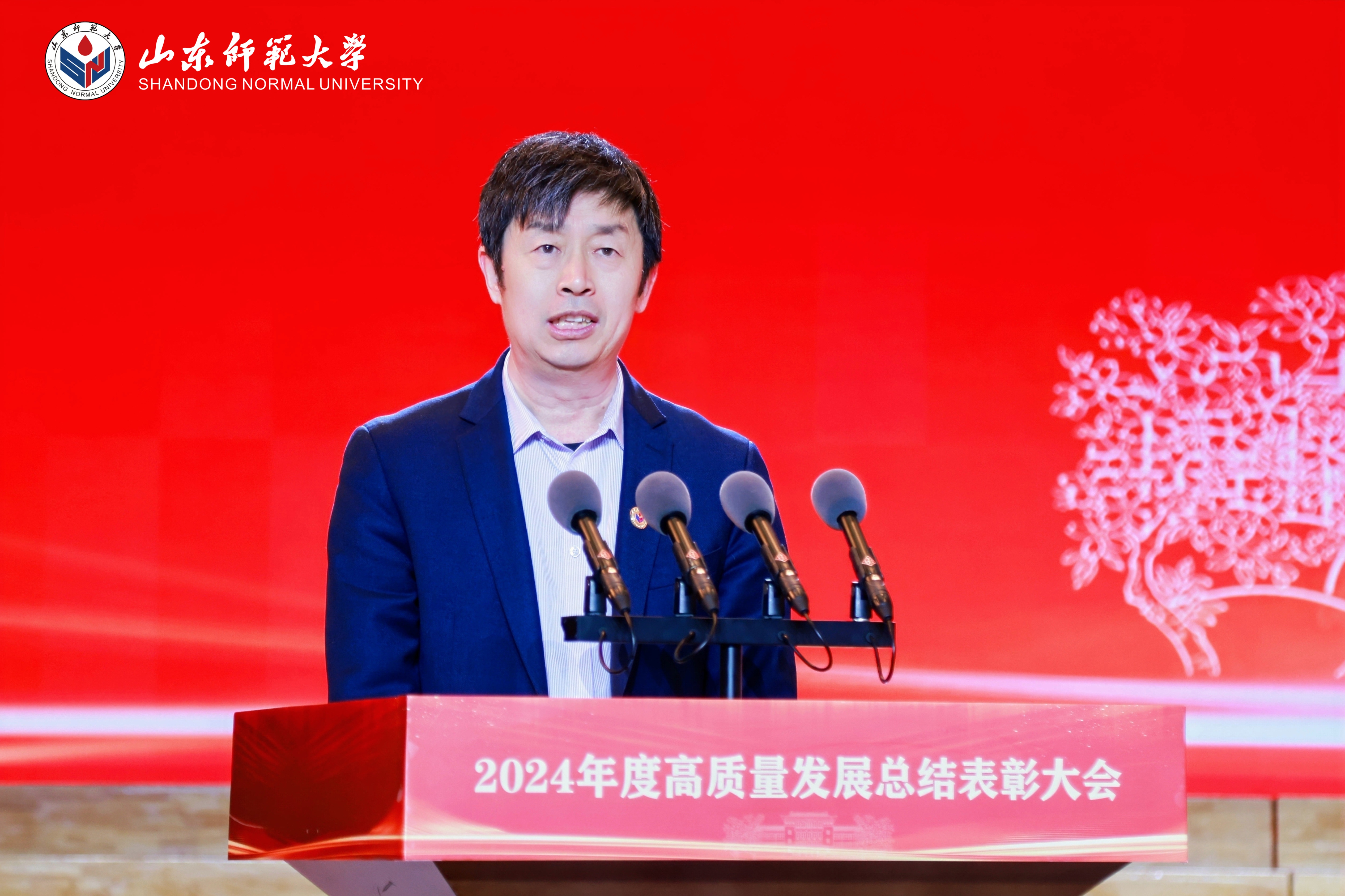 1月11日,山东师范大学2024年度高质量发展总结表彰大会在千佛山校区大礼堂隆重举行。我院荣获学校2024年度高质量发展“突出贡献奖”,院长王成新作为获奖单位代表发言。