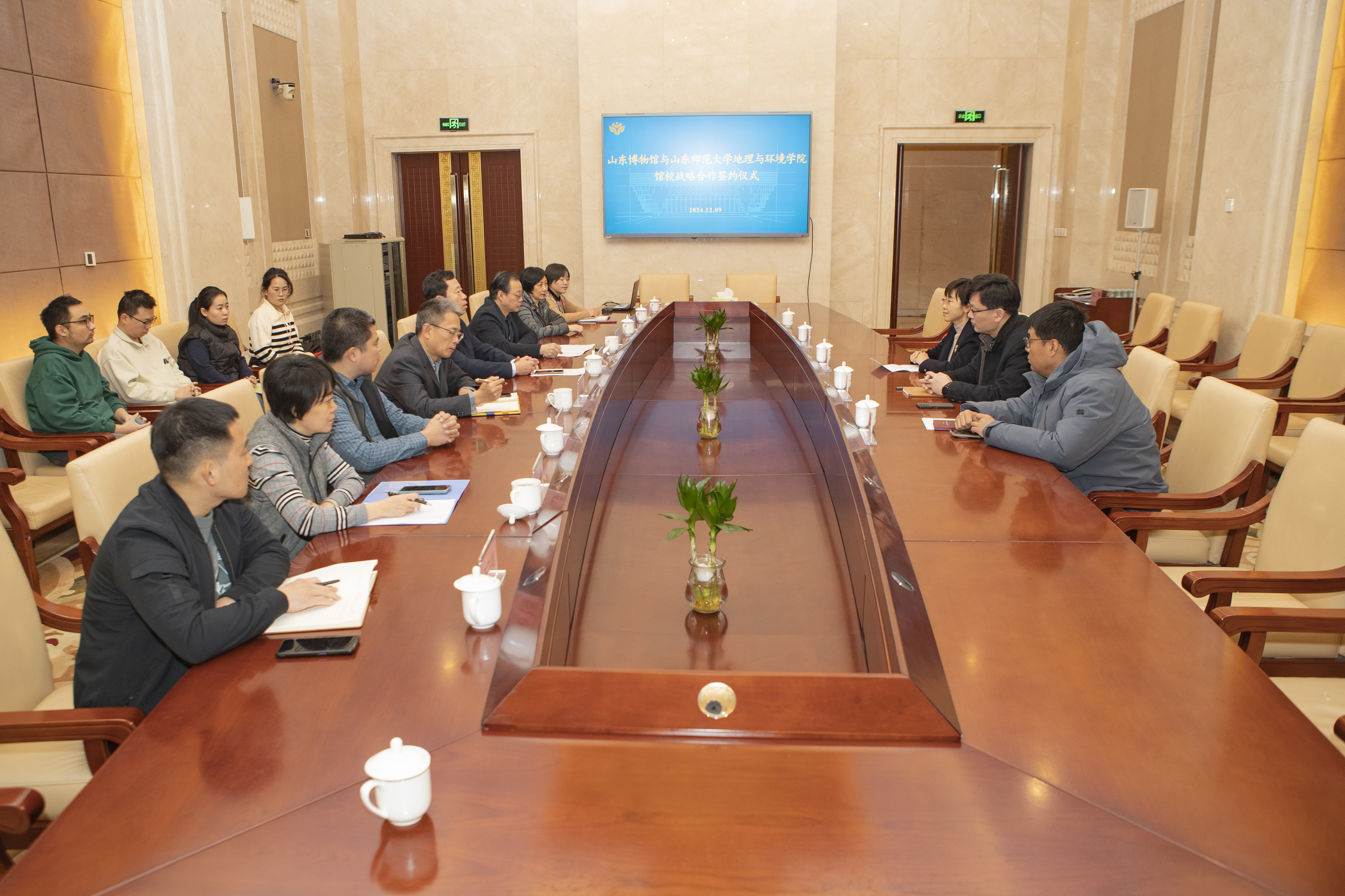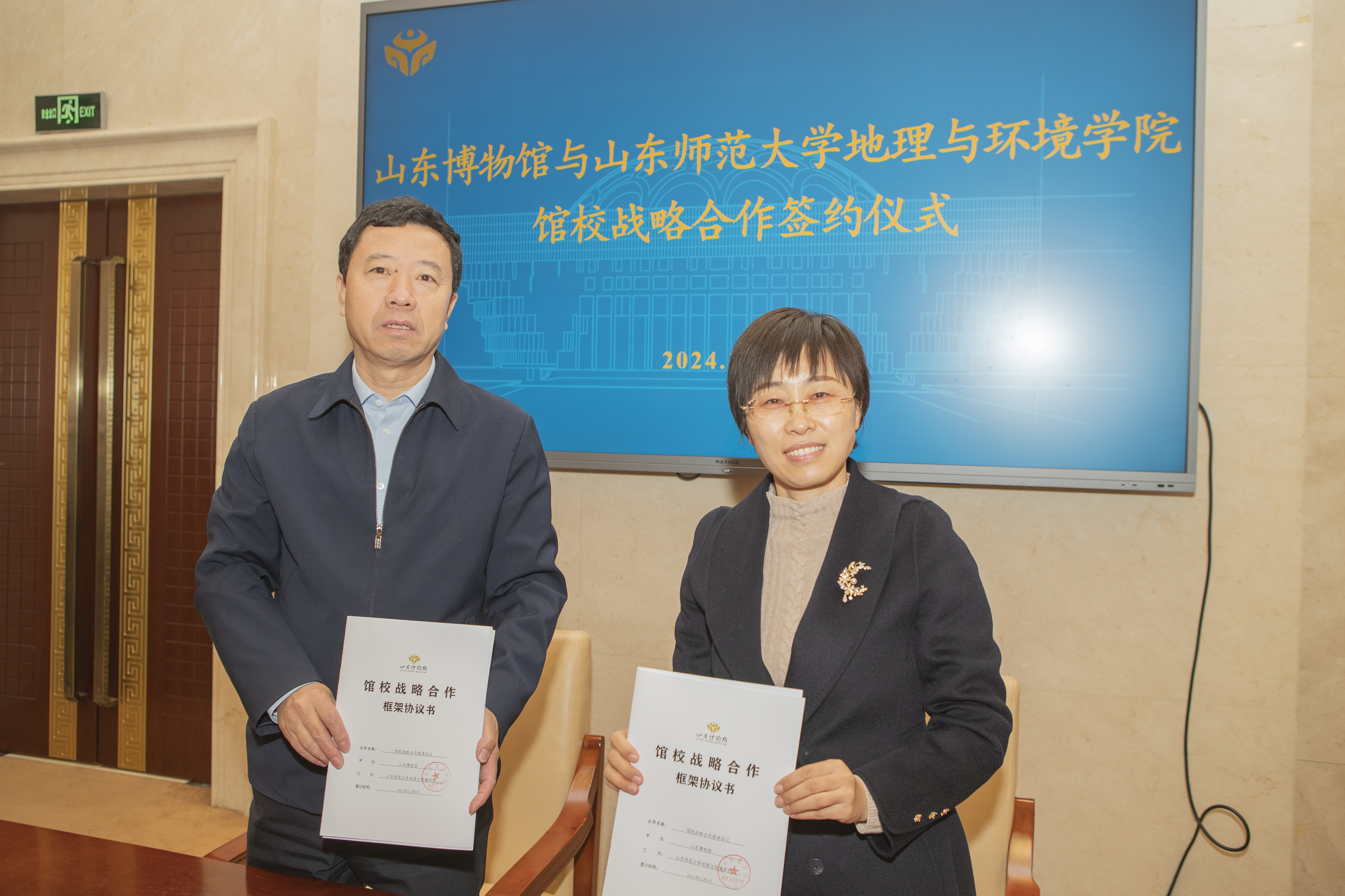 12月9日,山东师范大学地理与环境学院与山东博物馆签署合作协议。地理与环境学院党委书记刘永慧与山东博物馆党委书记、馆长刘延常代表双方签署馆校战略合作框架协议书。地理与环境学院党委副书记、纪委书记梁开敏,退休教师徐跃通教授,环境科学系主任、教工第二党支部书记孔强教授,环境科学系教师杜远达副教授;山东博物馆专职副书记卢朝辉、自然部主任孙承凯及自然部全体人员参加了签约仪式。