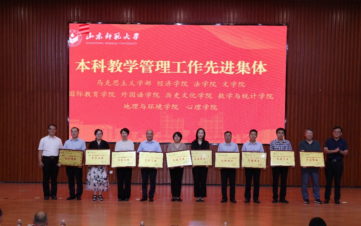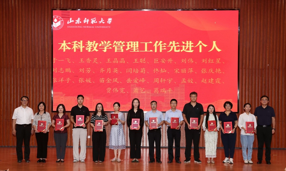 近日,教务处召开2024年秋季学期本科教学工作会议暨2023-2024学年本科教学管理工作先进表彰大会,学院获得“山东师范大学本科教学管理工作先进集体”荣誉称号,全校共10个学院获得先进集体称号。同时,孟姣老师被评选为学校本科教学管理工作先进个人、宋德香老师被评选为学校本科招生宣传工作先进个人。