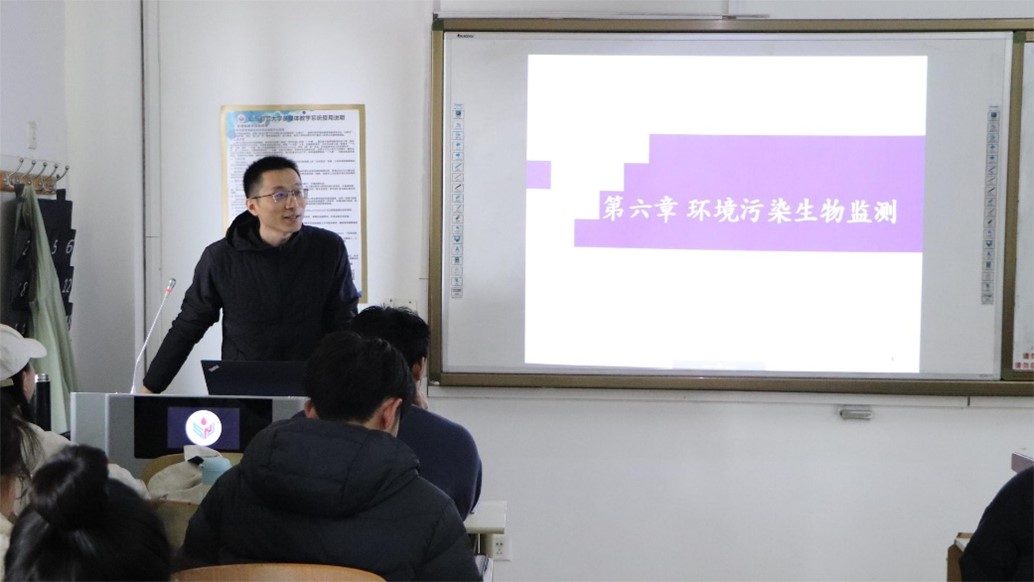 活动分为课堂讲解与课后研讨两个环节。在课堂讲解环节中,魏鹏老师首先回顾了土壤监测的相关知识,引出了本节课环境污染生物监测的教学主题。随后,他从水环境生物监测的概述、基本概念、监测方法、应用案例四个方面讲授本节课程。期间通过课堂提问、当堂测试、教学视频等方式增加教学活跃度,使学生积极融入课堂。同学们积极参与互动,认真思考,课堂效果良好。