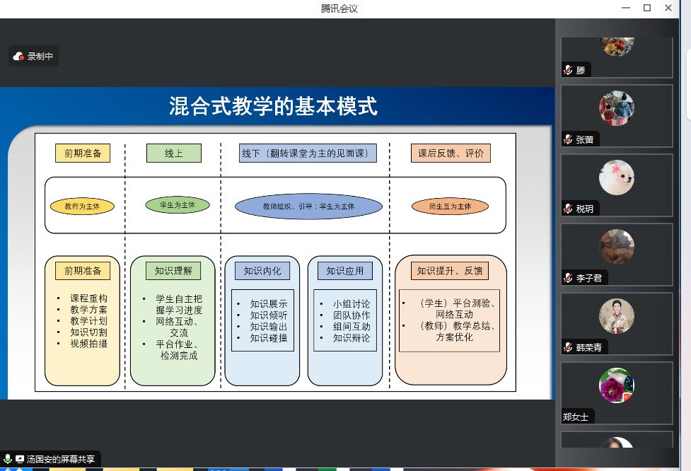 汤国安教授从国家新时代教育背景出发,紧紧围绕“一流本科专业建设”这一主题,结合自身团队建设、国家线上课程申报以及开展线上线下混合式国家一流课程建设的经验,详细介绍了不同类型课程建设的内容与标准、模式与要求、要点与难点以及方法创新。此外,汤教授针对申报书中课程团队、课程目标、课程内容、课程存在的问题、创新点特色、预期成果等部分的撰写,给予了详细介绍与指导,期间汤教授同与会人员进行了深入的互动交流。