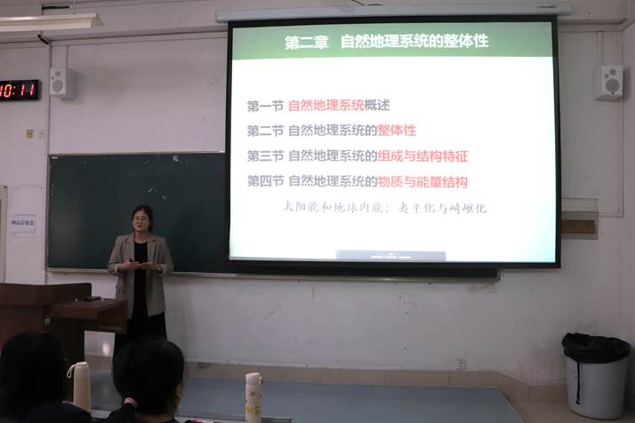 11月3日下午,地理与环境学院于长清湖校区文渊楼C139开展“青师启航课堂(1+1)”公开课活动。本次公开课程由青年教师徐小亚主讲,授课课程为《综合自然地理》。学校教师教学发展中心副主任丁同楼,学院副院长程钰,督导组成员赵明华、陈培安、李子君、刘玉真及部分青年教师共20余名老师参加了本次活动。
