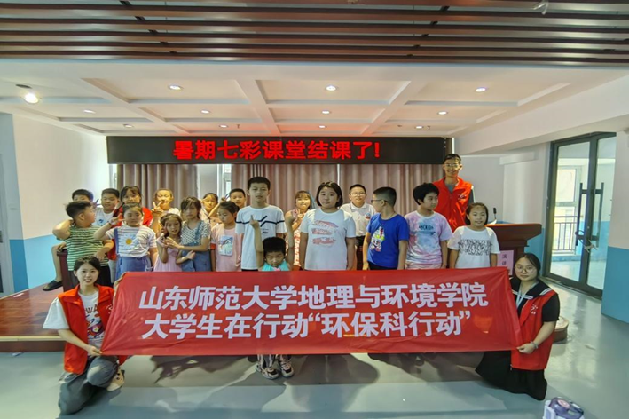 “青”心关怀,与爱同行,七彩课堂,健康成长。为积极响应团山东省委和山东省教育厅印发《关于开展“百万大学生进社区”社会实践工作方案》的相关精神,7月8日至7月15日,由山东师范大学地理与环境学院组建的“七彩课堂”志愿服务团队于济南市长清区常春藤北区社区开展了为期8天的暑期社区青少年托管素质教育服务活动。