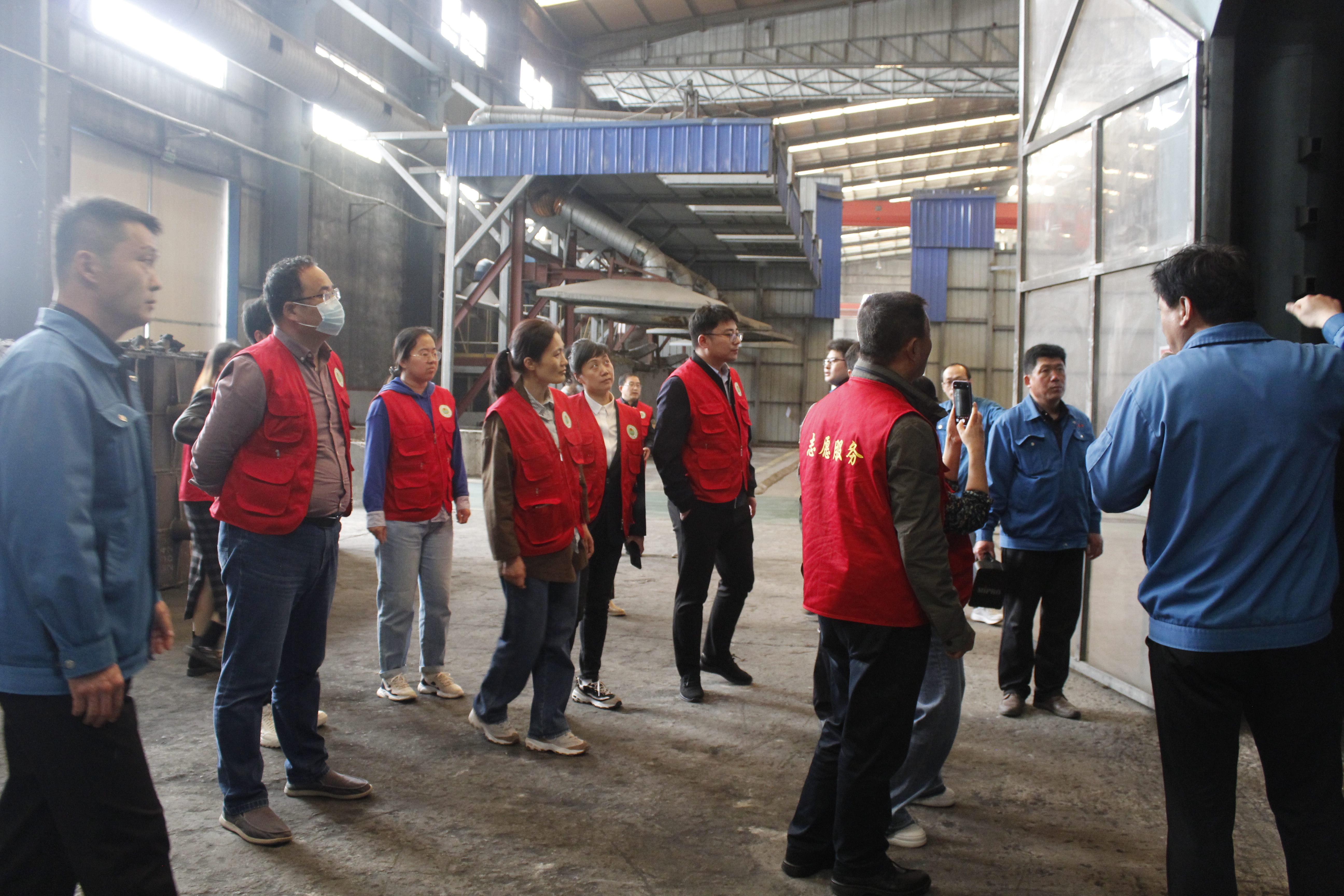 志愿服务队第二站来到山东汇丰铸造科技股份有限公司。在公司讲解员的带领下,志愿者一行人先后参观了汇丰公司的党建活动室、生产车间、生产原料存放库、危险废物暂存间,志愿服务队详细了解企业环保设施运营情况,并提出了生态环境保护优化建议。