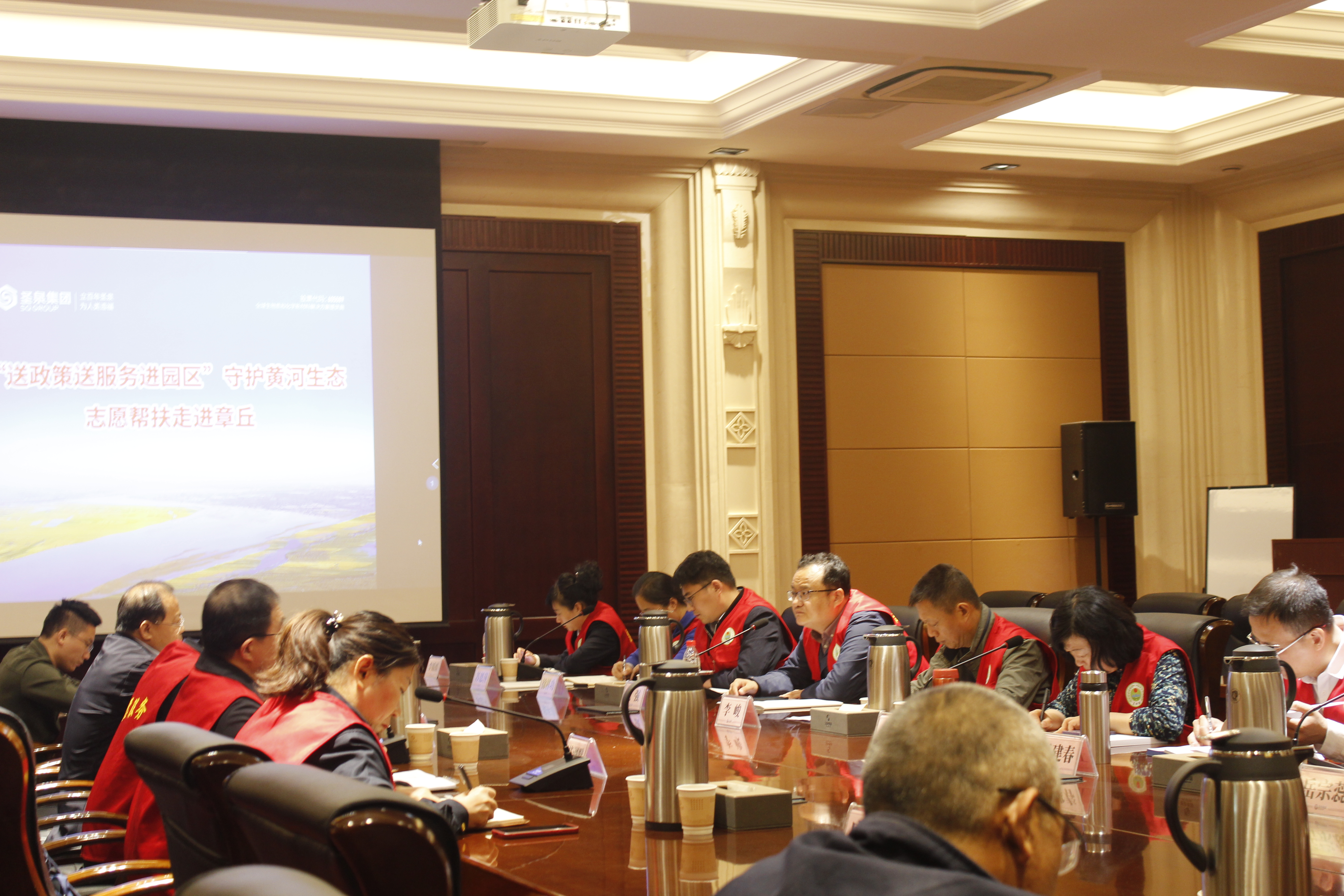 志愿服务队第一站来到章丘区刁镇化工园,在刁镇化工园区的会议室内,“送政策、送服务、进园区”守护黄河生态志愿帮扶座谈会如期开展。座谈会上,刁镇化工产业园管理办公室主任马俊利介绍了园区基本情况与重点环境问题,随后,省环境评审中心李峻主任就园区环境重难点问题发表讲话,最后,孔强等专家学者结合刁镇化工产业园实际,开展了黄河流域生态保护和高质量发展政策宣贯,为园区管委会和企业送上文件汇编,现场解答了园区企业有关环评办理、日常管理等方面的问题。会后,志愿服务队来到企业污水处理站,指导企业做好环境污染风险防范、污染治理设施运行维护等方面工作。