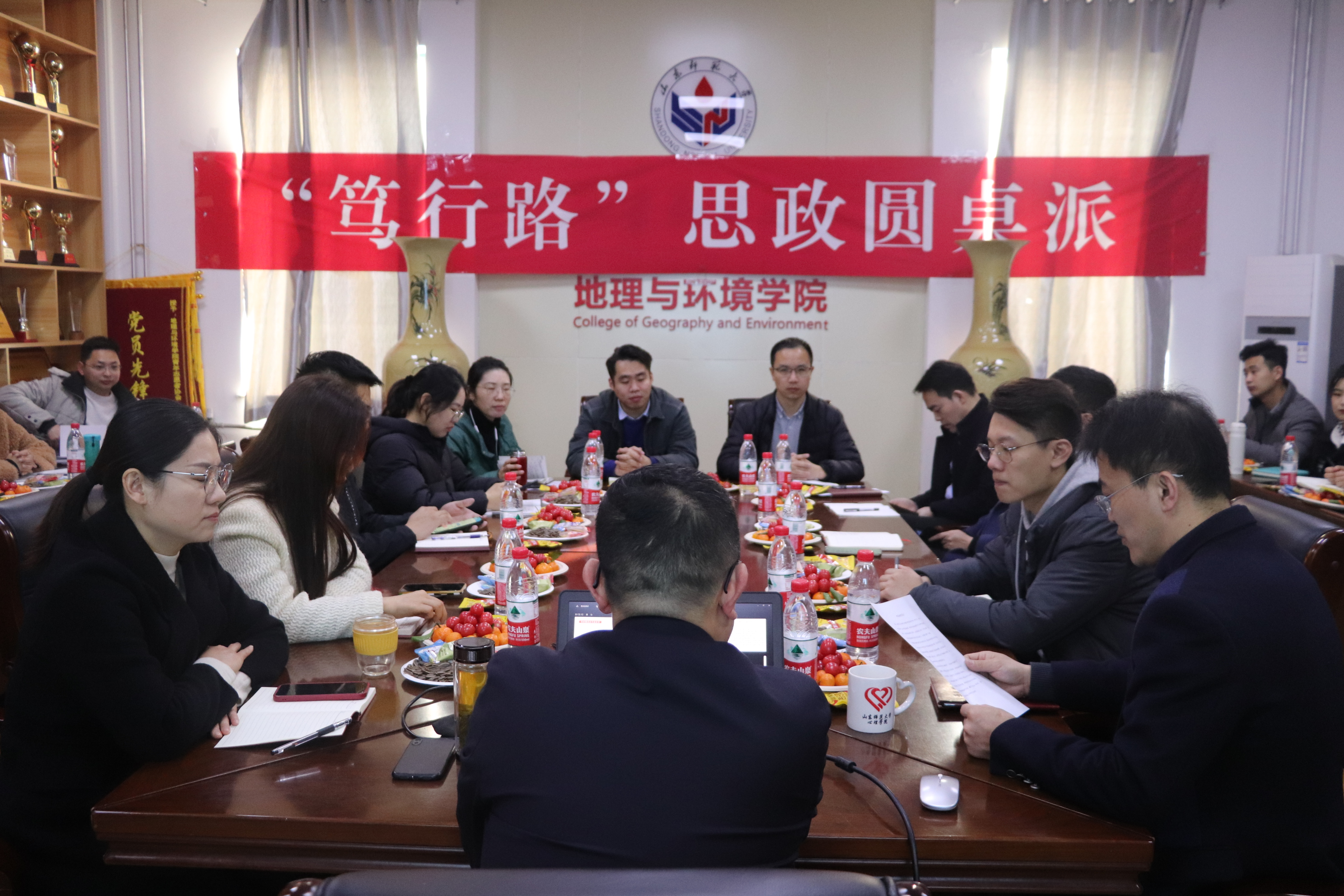 据悉,“‘笃行路’思政圆桌派”由心理学院、信息科学与工程学院、物理与电子科学学院、地理与环境学院共同发起,遵循资源共享、优势互补、合作共生的总体工作思路,按照“工作场域相邻、学科属性相近、资源优势相融”的原则,建立园区视域下共商、共育、共享、共赢之大学生思想政治工作机制,藉由开展政治理论共学,优势资源共享,实践活动共办,工作队伍共育,中心工作共促、信息平台共建等活动,致力于丰富大学生思想政治工作样态,提升大学生思想政治工作的实效性、时效性和呈现度。
