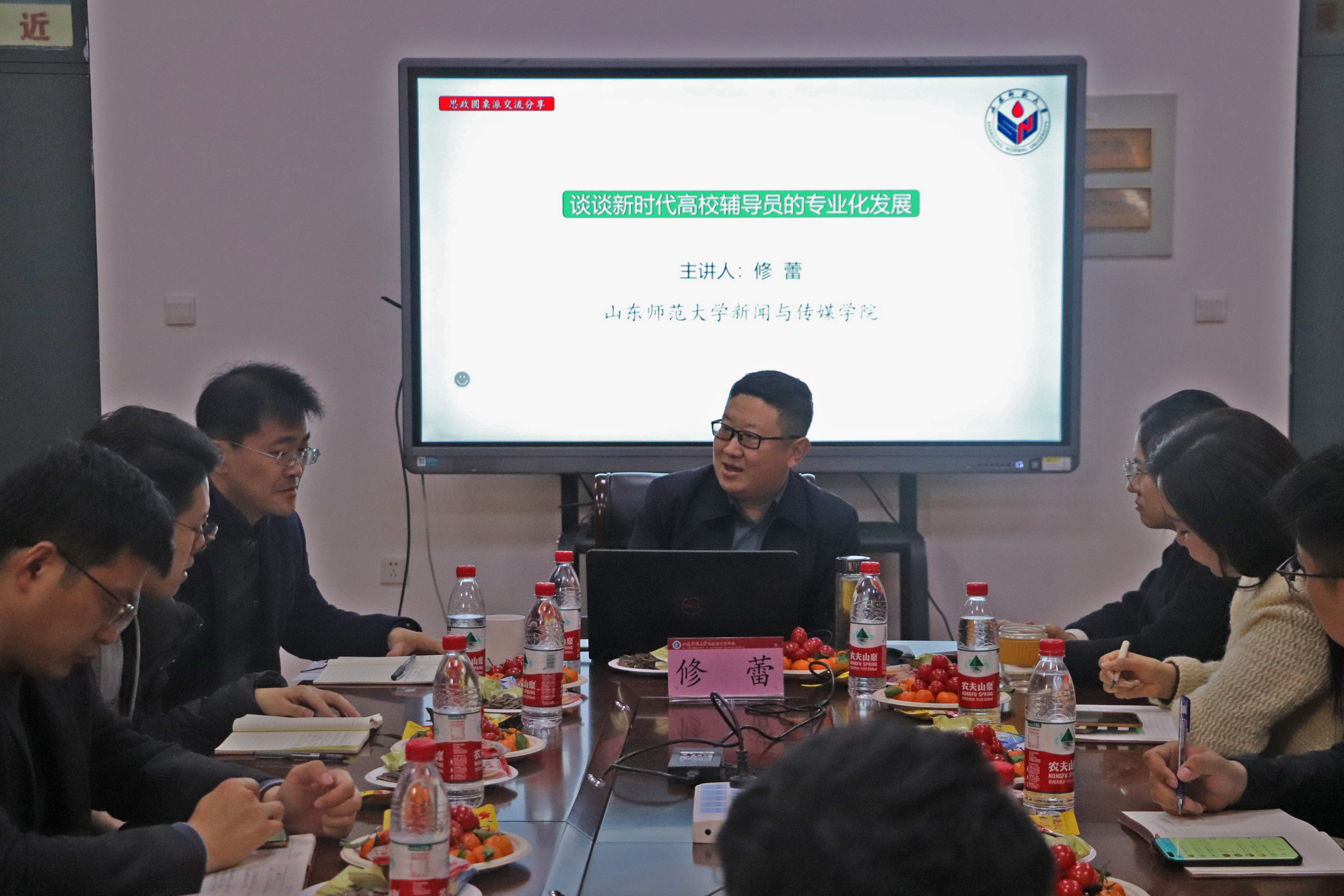 修蕾在分享交流中,首先对“辅导员”这个职业名称进行了充分解读,他引用前任教育部部长陈宝生对于“辅”“导”“员”内容的解读,帮助在座的辅导员同仁们进一步明晰了辅导员角色定位的问题以及肩负的新时代使命;随后,他分享了了辅导员如何在事务性工作中践行“立德树人”的根本任务,以及“两大育人体系”到“十大育人体系”再到“全环境立德树人”的育人格局演变,帮助大家理顺时代发展赋予大家职业化、专业化的内在要求,并从温度、高度、广度、深度等九个维度阐述了辅导员创造性践行“立德树人”的新时代格局;最后,他回归辅导员工作“九大职能”,结合自己从事辅导员工作二十余年的职业经历,用生动的事例以小见大地剖析了辅导员工作实践的艺术化、温度化处理。分享会最后,与会辅导员们热烈讨论,围绕辅导员的专业化发展中青年辅导员们展开了深刻的学习交流。