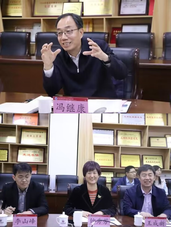 冯继康书记在了解学院的办学历史、学院文化建设,听取学院工作汇报后,对我院近年来在人才培养、教学科研、学科建设、党建思政等各项工作中取得的显著进步给予充分肯定,对全院上下凝心聚力干事业、领导班子团结协作谋发展的精气神表示赞赏。他在讲话中指出,地理与环境学院前身是建校伊始最早设立的6个系之一,底蕴深厚,领导班子团结进取,发展势头强劲,对于学院发展中遇到的问题和瓶颈,要主动沟通协调,尽快找出解决问题的办法,同时要继续大力推进学科建设,重点聚焦大平台、大项目、大团队、大成果,紧紧抓住全国重点实验室重组的重大机遇,提升地理学办学层次、教学地位,助力地理学科向一流学科迈进。