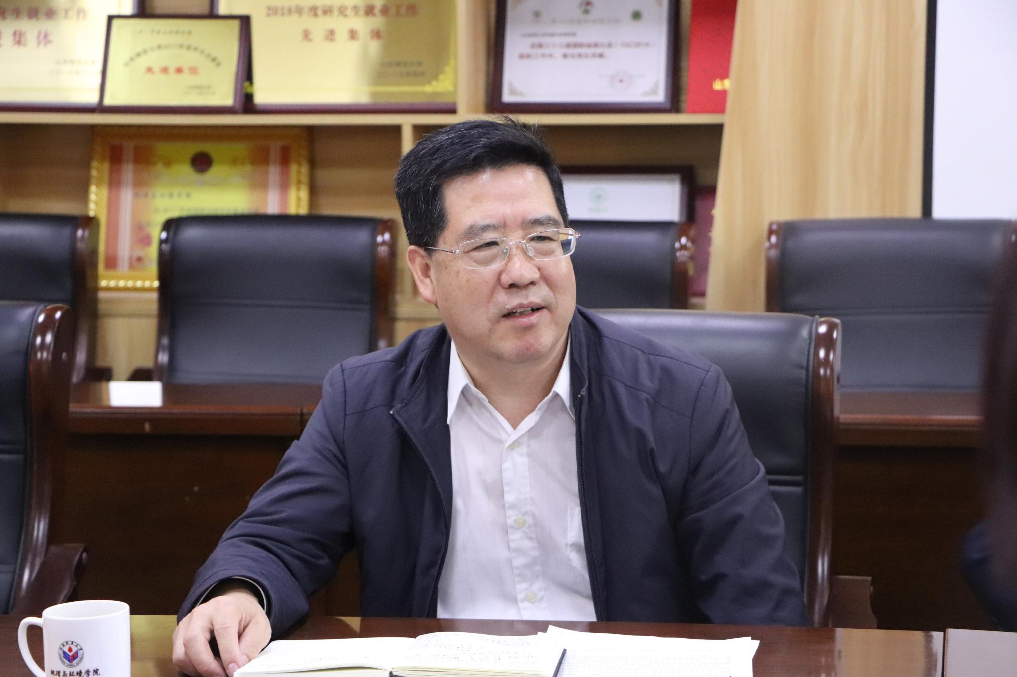 王校长介绍了此次调研活动的目的和主要内容,听取了学院在师资力量、基金立项、科研获奖、人才引进方面的情况汇报。并对学院近几年科研业绩、人才引进方面取得的成绩,形成的“以老带新、齐头并进”的科研氛围给予了充分的肯定,对学院科研平台建设,科研奖项、重大基金课题申报等工作提出发展指导建议。王校长强调,学院要结合专业优势,秉承习近平总书记“创新有我,创造有我,奋斗有我,伟大事业后继有人!”的嘱托,在推进落实黄河战略中发挥积极作用。