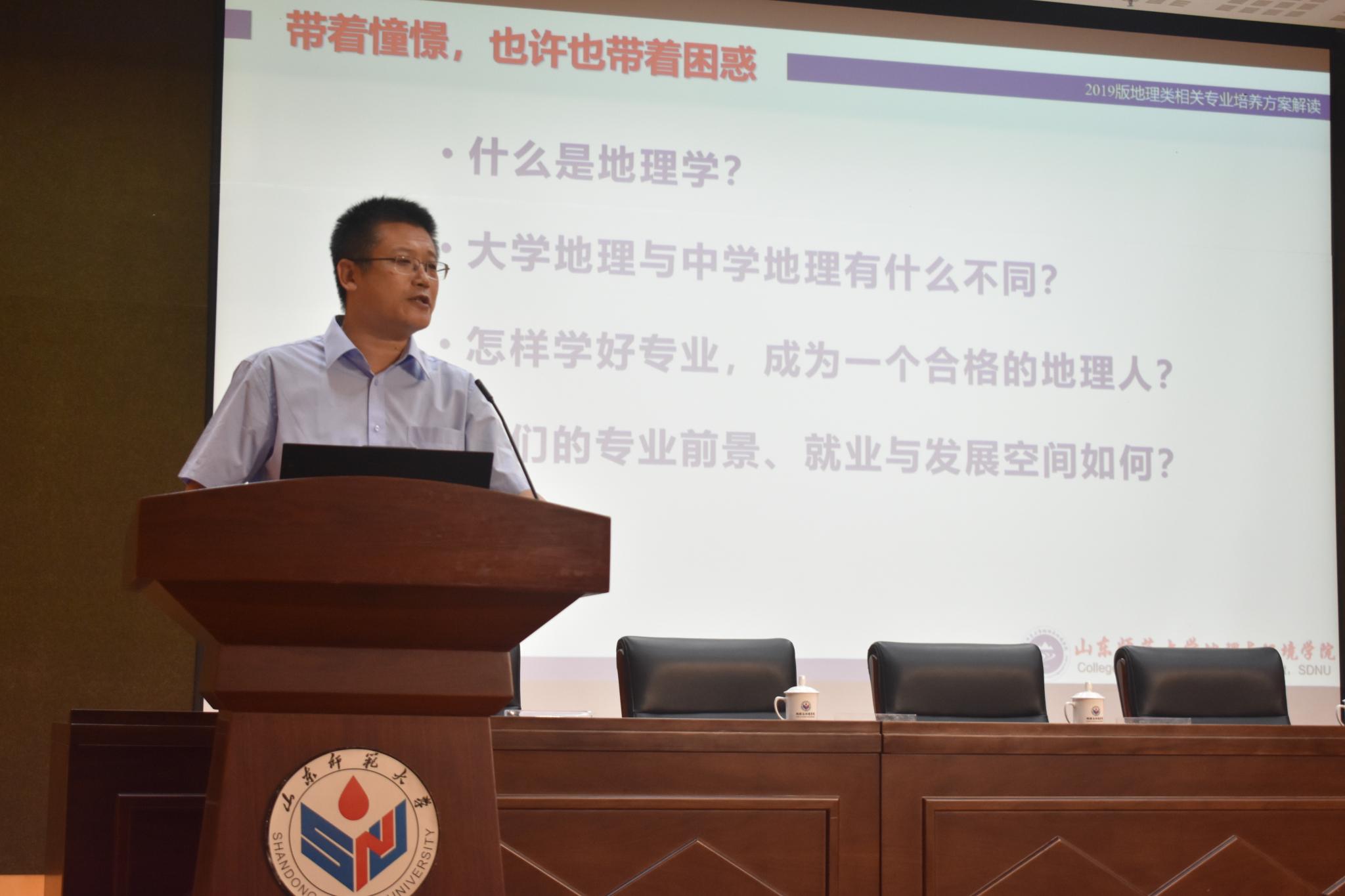 为增进2022级新生对所学专业培养方案的理解,加深大家对于本专业的认识,9月9日下午,学院于图书馆地下报告厅举行“2022级地理科学类培养方案解读报告”,本次报告由地理科学系主任常军担任主讲人,2022级地理科学类200余名同学参会。