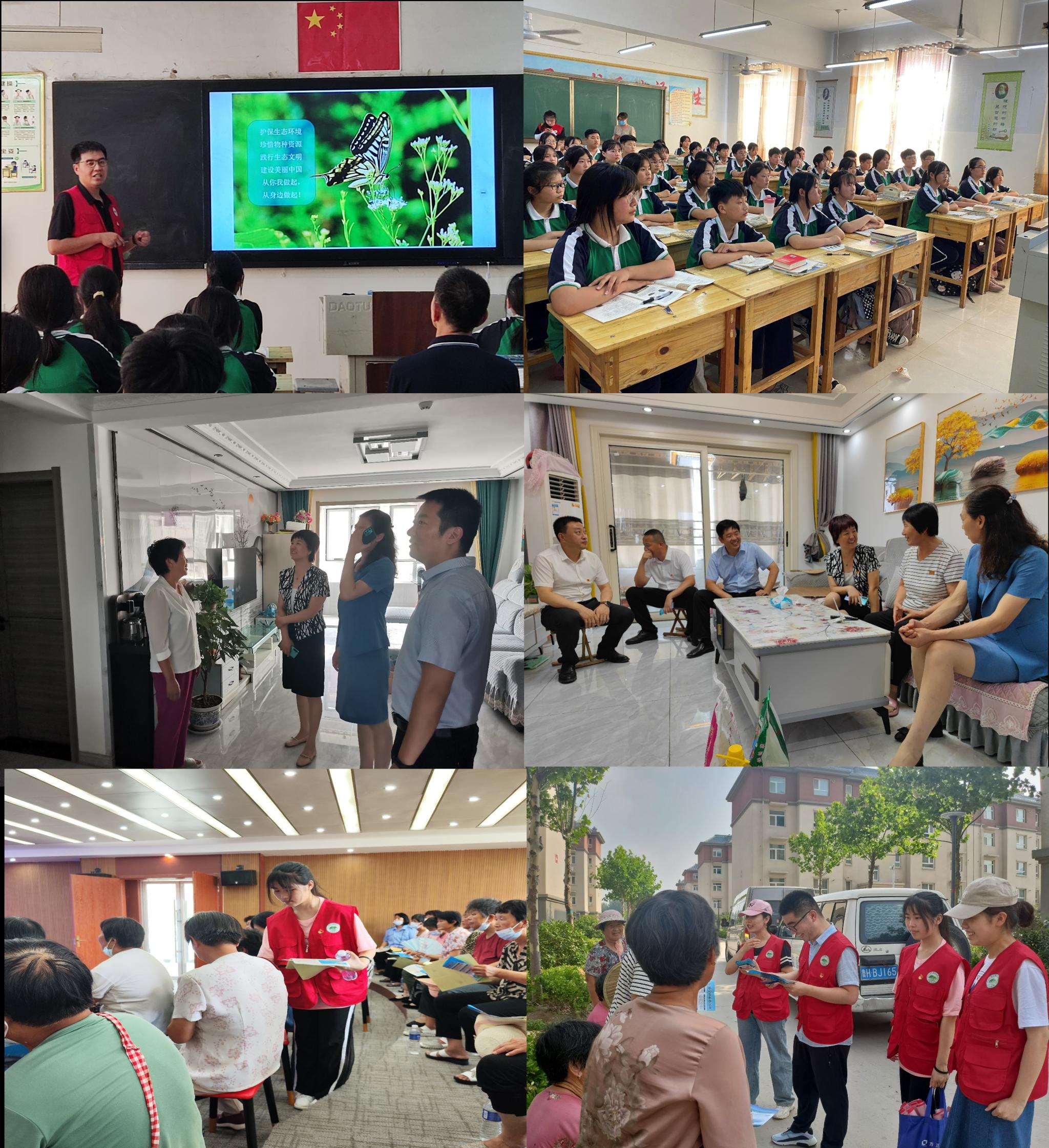 在赵堌堆乡翠屏家园社区,在参观了家居产业园、黄河滩记忆馆后,分三队进行志愿服务:一队到赵堌堆乡中学进行生态文明宣讲;一队走访贫困户,了解民生所盼,倾听群众的心声,解答他们所关心的问题;一队走进社区服务中心和社区广场,进行生态文明宣讲并发放宣传册和宣传美篇,对高考生进行报考指导并发放志愿填报服务卡。