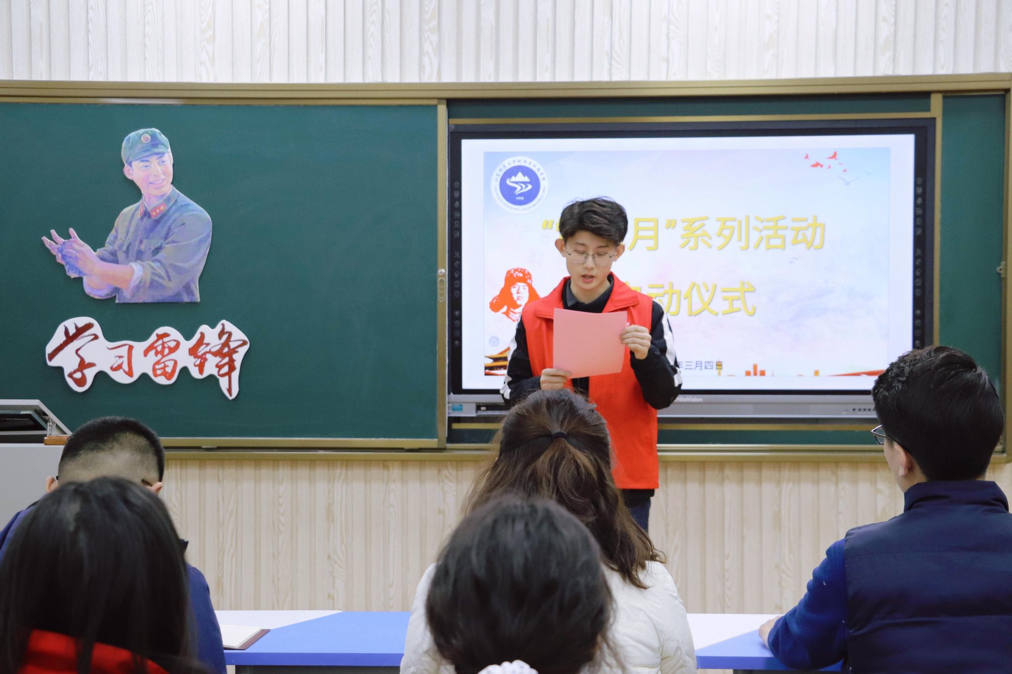 在启动仪式上,学院青年志愿者协会副会长邹瑞翔对上个年度的志愿者工作进行总结。2021年学院青志协的“盒乐不为”、“暑期支教”和“校园‘5+’行动”等一系列有特色、有温度的活动获得了学校、学院各部门的高度认可,并于今日再次蝉联“校级4星级青年志愿者协会”荣誉称号。随后,志愿者代表王浩宣读了《关于“雷锋月”系列活动的倡议书》,他提出:“希望广大青年志愿者携起手来,在实践中加深对‘雷锋精神’的认识,在校园中掀起自觉践行‘雷锋精神’的热潮,使‘雷锋精神’在美丽的山东师范大学校园内外,发扬光大、传承不息。让这个春天,因为大家的加入而更加温暖!”