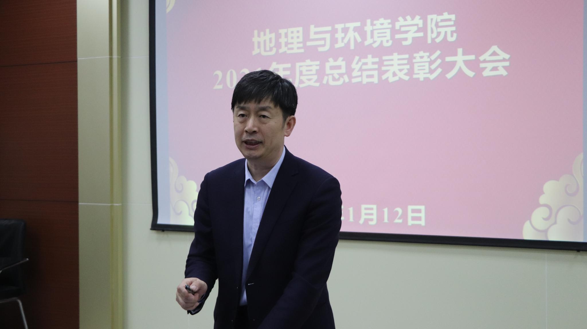 王成新作2021年度工作总结报告。在报告中,王成新全面回顾了过去一年学院在党建引领、科学研究、学科建设、教育教学、合作交流、人才培养等方面的工作成绩,并对长期以来为学院事业发展无私奉献的广大教职员工表示衷心的感谢。他深刻总结了过去一年工作中存在的问题,客观分析了学院发展尚存的不足,并对教职工未来的工作提出殷切期望,进一步明确了学院发展目标及未来规划。王成新表示,希望全院上下能够以习近平总书记重要讲话精神为指引,进一步提高思想站位,主动追求卓越,凝聚发展动力、抢抓发展机遇,为建设一流学科继续不懈奋斗!