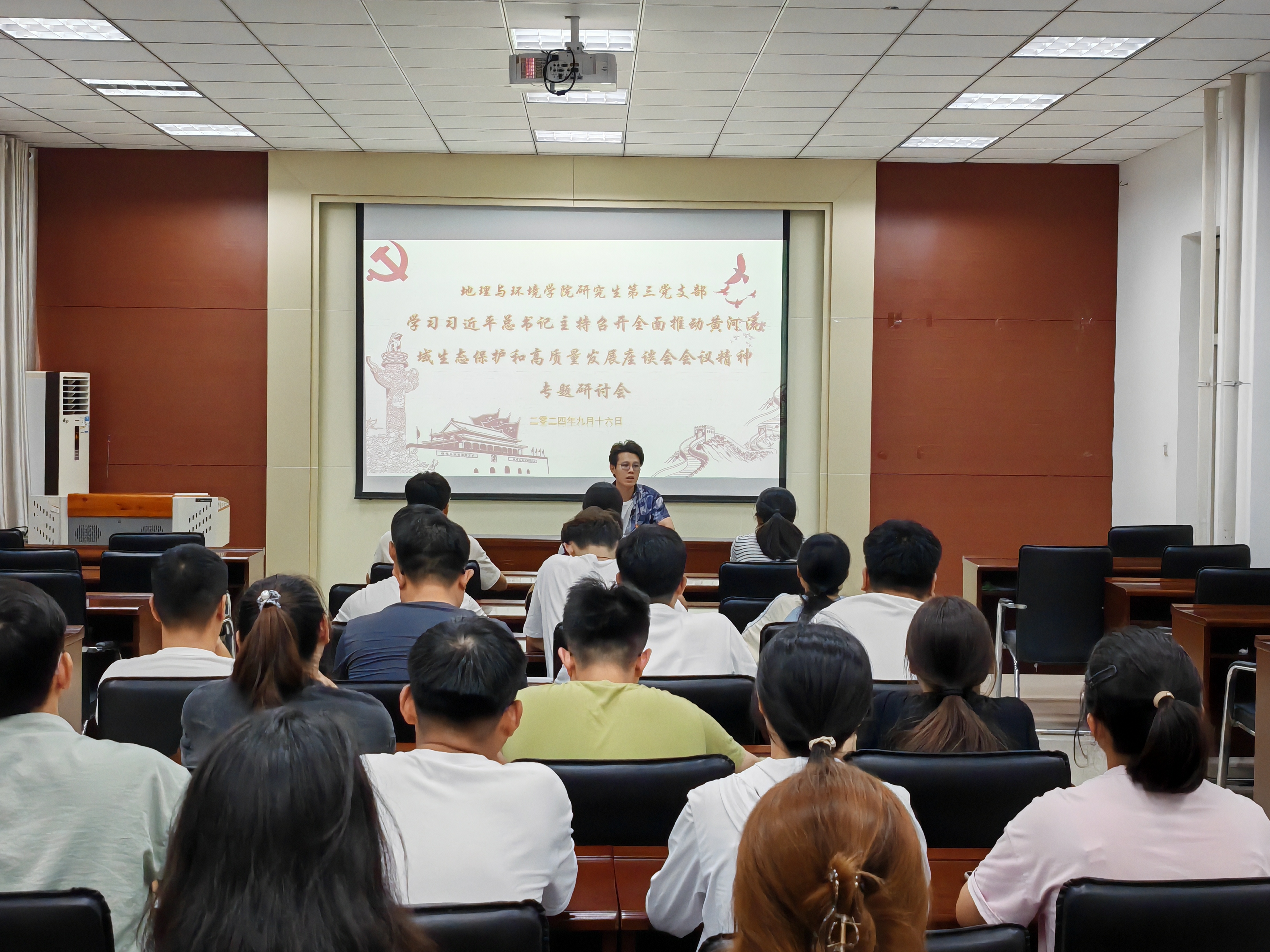 9月16日,研究生第三党支部于长清湖校区开展“学习习近平总书记主持召开全面推动黄河流域生态保护和高质量发展座谈会会议精神”专题研讨会,会议由党支部书记欧阳德龙主持。