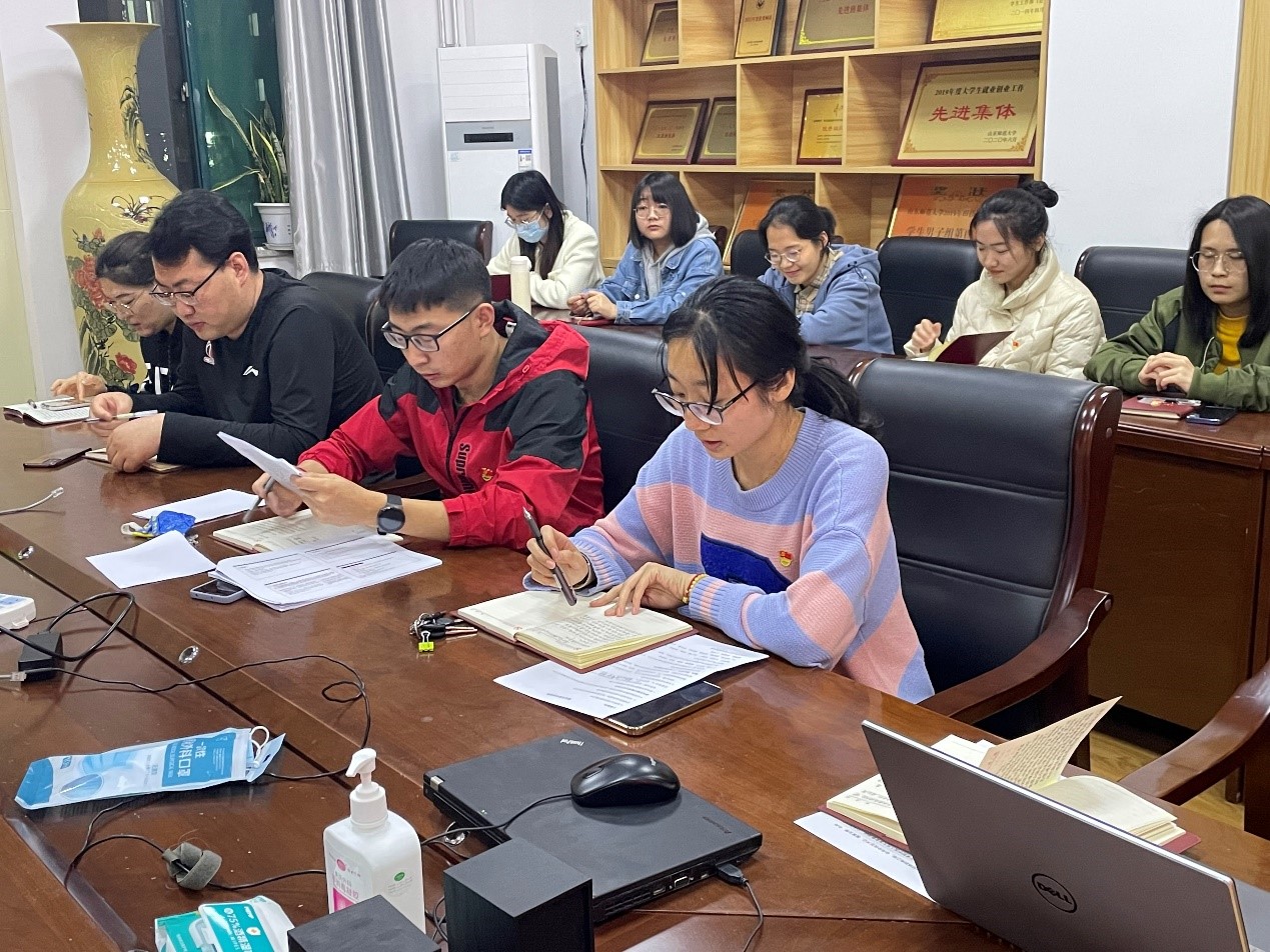 最后,支部书记张雪洁总结发言:习近平总书记的讲话催人奋进,饱含着总书记对新时代青年的殷切期望。作为新时代的地环学子,要牢记总书记嘱托,听党话、跟党走,将家国情怀与人民同呼吸共命运的情感融入于学习生活中,坚持立足当下、面向世界、放眼未来,增强知识更新的紧迫感,在青春赛道上跑出我们最好的成绩!