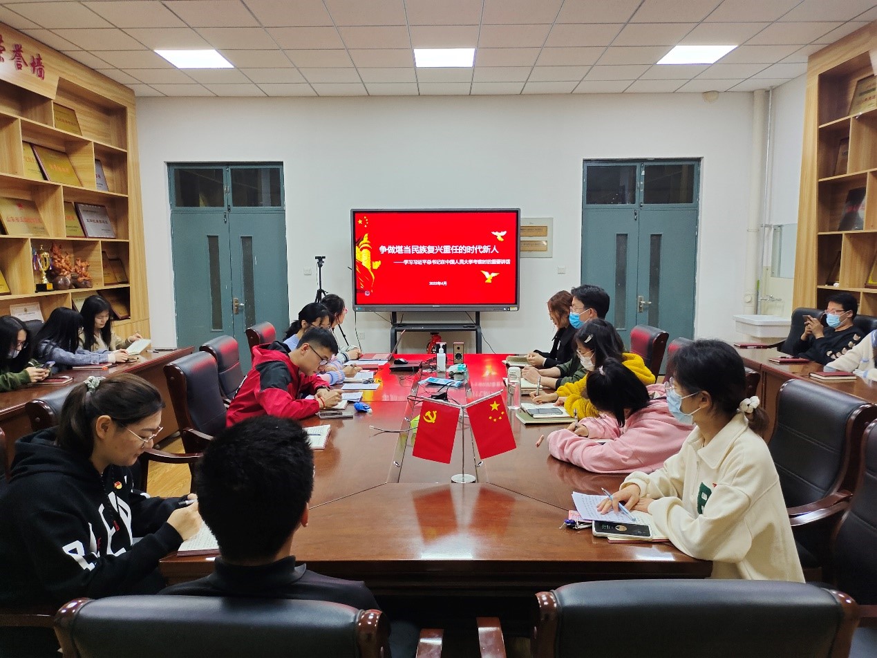 在五四青年节即将到来之际,中共中央总书记、国家主席、中央军委主席习近平4月25日上午来到中国人民大学考察调研并发表重要讲话,勉励青年在青春的赛道上跑出最好成绩。28日晚,地理与环境学院研究生第一党支部在G314召开深入学习贯彻习近平总书记重要讲话精神座谈会。会议由支部书记张雪洁主持,研究生一支部所有党员参与学习。