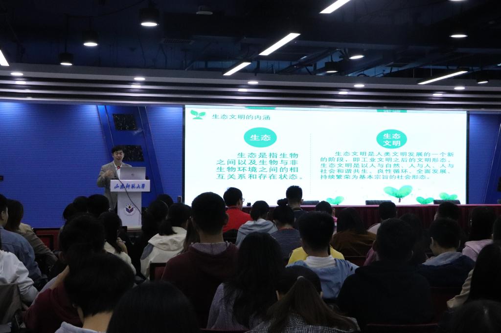 为深入推进“不忘初心、牢记使命”主题教育,结合我院学科专业特点,将使命教育、意识形态建设与学风建设有机统一,10月31日下午,学院党委副书记、院长王成新教授为全院师生党员讲了题为“推进生态文明,建设美丽中国”的主题党课。