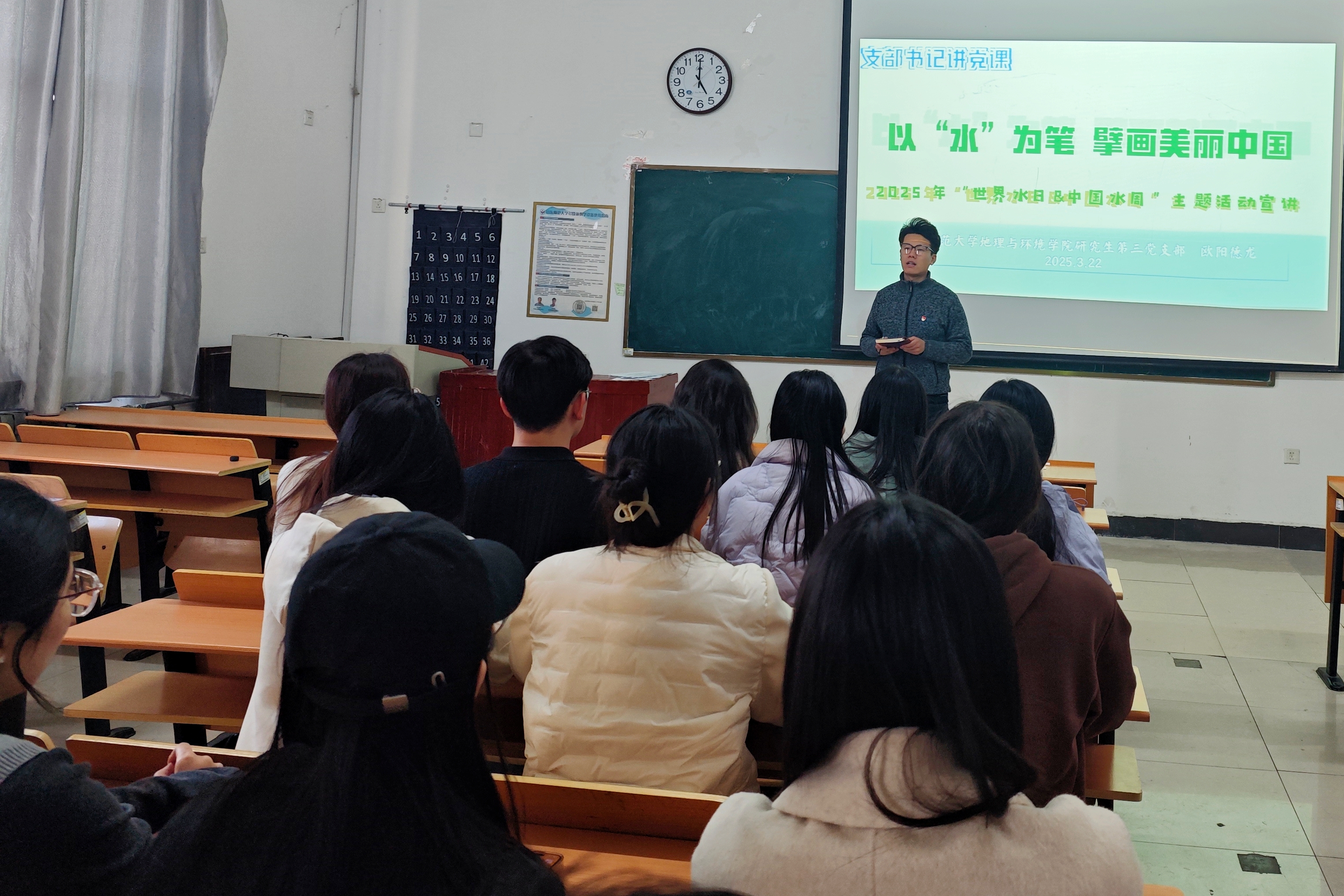 为深入学习贯彻习近平生态文明思想、习近平法治思想和习近平总书记关于治水重要论述,学院研究生第三党支部于3月22日在文澜楼A区H315教室开展“支部书记讲党课”活动,党支部书记欧阳德龙以《以“水”为笔抒绘美丽中国》为题,向支部党员们讲授了专题党课。