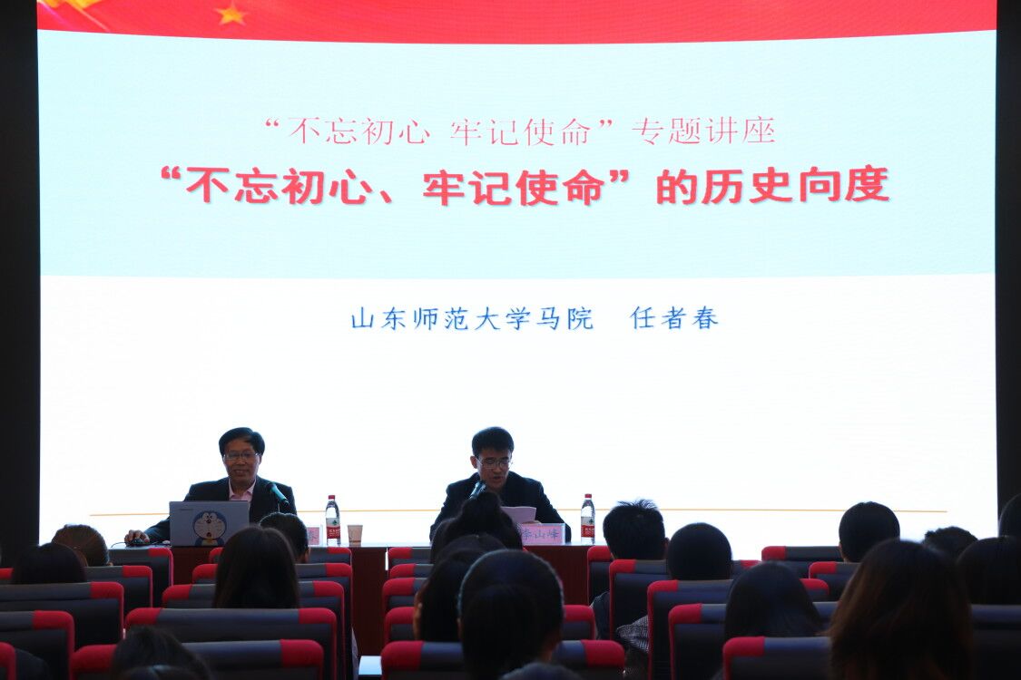 本次报告任教授从使命是什么、使命型政党是怎样炼成的、使命担当何以必然、使命如何担当四个方面进行解读。任教授首先向全体师生介绍了习近平论初心和使命“为人民谋幸福,为中华民族谋复兴”并提出思考“党的使命与我的使命有何关系”。任教授由众多历史人物提炼出使命具有双赋性、神圣性、激励性和长期性等特征,并指出要用生命承载使命,用使命诠释生命;用生命完成使命,用使命提升生命。任教授介绍了使命型政党的责任是服务人民、指引方向、制定蓝图、实现使命,中国共产党的使命担当来自于对中国优秀使命文化的传承和发展,来自于对生命意义的觉解,来自于马克思主义对历史发展规律的科学揭示。最后任教授指出只有使命让一个人葆有内在激情和不竭动力并鼓励大家承担好自己使命,为国家发展贡献自己的力量。