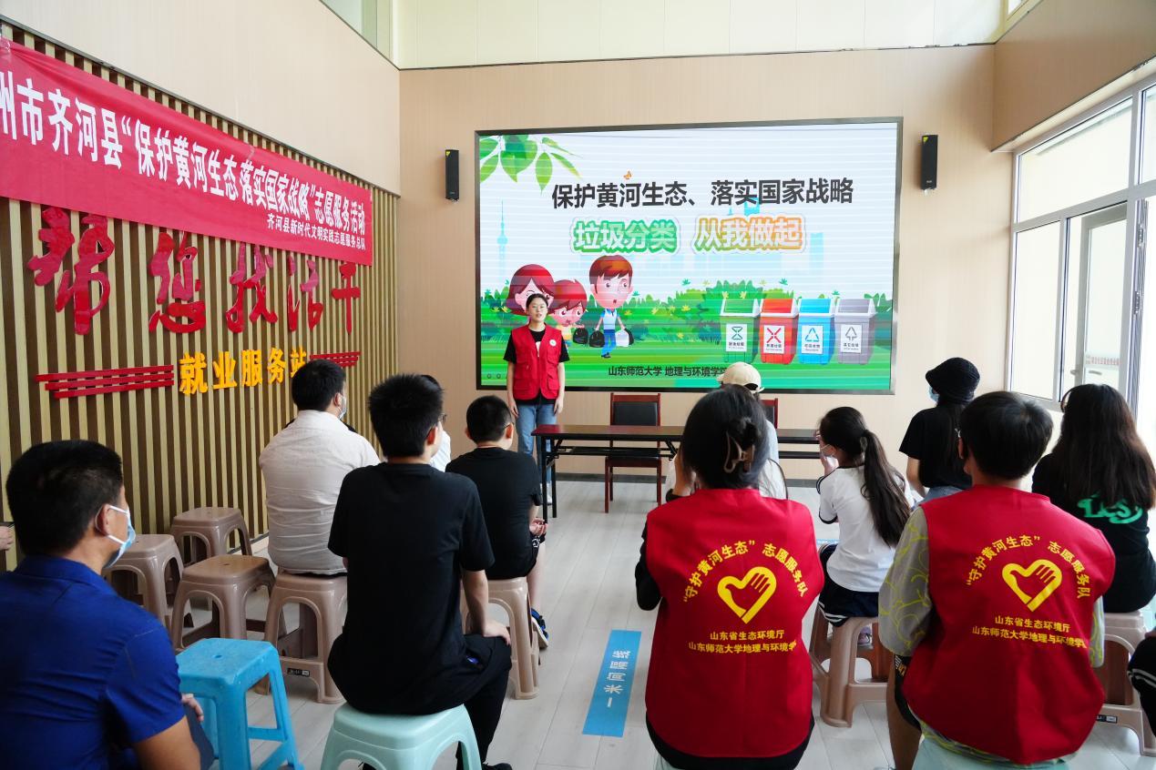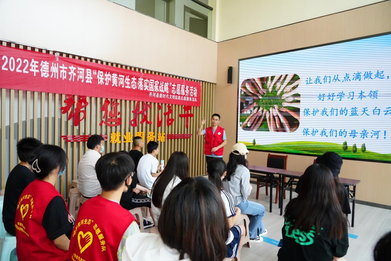 为深入贯彻落实习近平总书记视察山东时“推动黄河流域生态保护和高质量发展走在前”的重要指示要求,结合中央、省“美丽中国,我是行动者”提升公民生态文明意识行动计划的有关工作安排,2022年7月14日,“守护黄河生态”志愿服务队走进德州齐河,与德州市生态环境局齐河分局共同开展活动。本次活动由学院博士生导师刘恩峰教授和团委书记李妮娜带队。