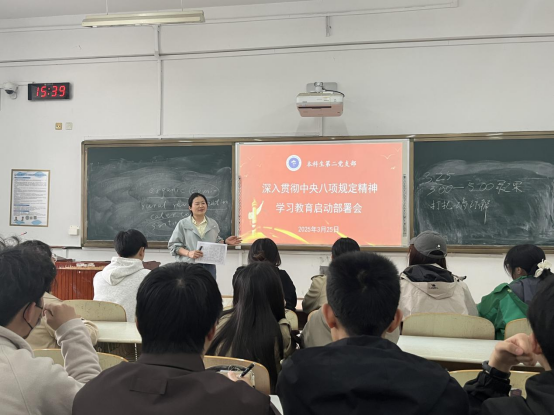 3月25日,我院本科生第二党支部于文渊楼C260教室召开“深入贯彻中央八项规定精神学习教育”启动部署会,党支部书记范媛媛主持会议并组织学习。