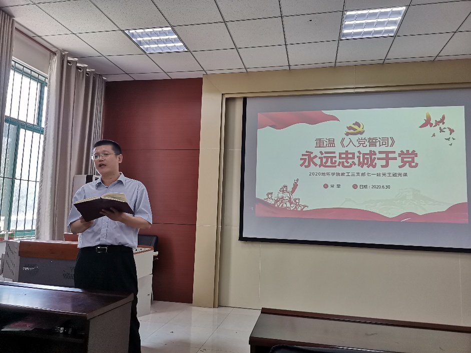 6月30日下午14时,我院教工第三党支部支部在文澜楼G210报告厅开展了“我来讲党课”活动,支部书记常军同志为支部党员上了题为“重温入党誓词,永远忠诚于党”的主题党课。