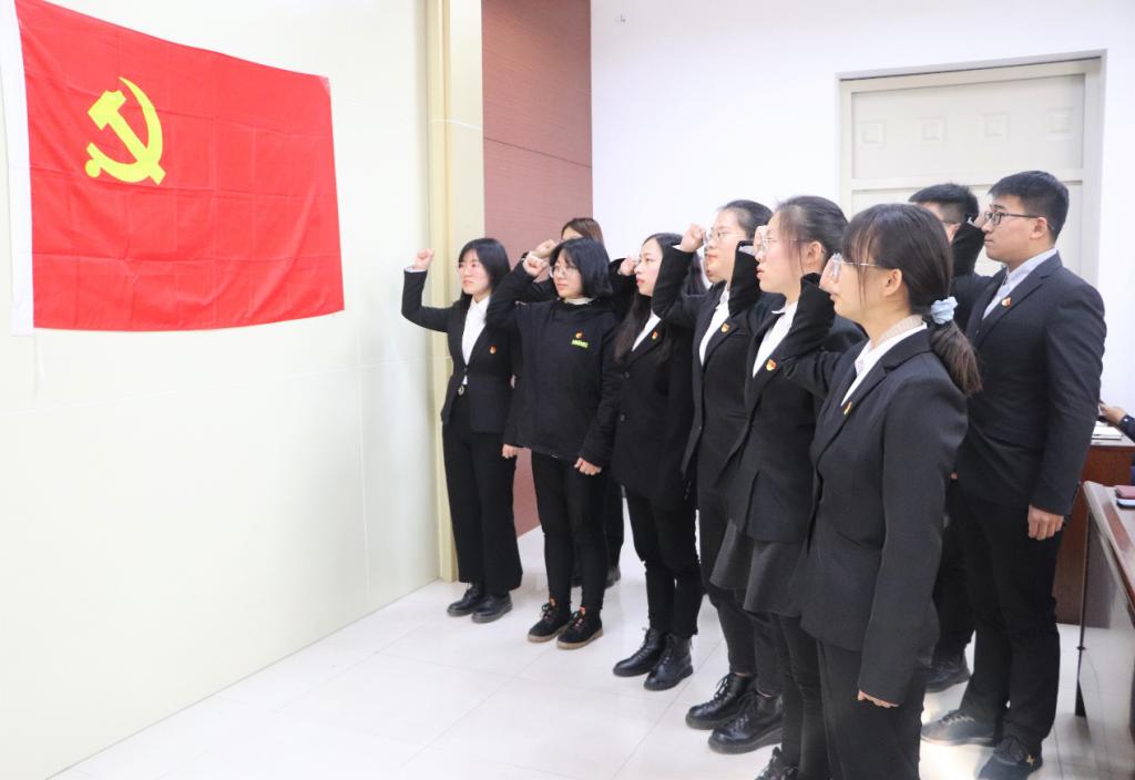 本次纳新大会在庄严的《国际歌》中拉开帷幕,全体人员起立,合唱《国际歌》。会上,严格按照“一人一议”的要求,陈雪燕等11人,先后宣读了入党志愿书,向党组织汇报在发展对象期间的思想、学习、工作、生活等方面的表现,并提出申请;入党介绍人陈光、刘相良和支部同志分别对每位发展对象在培养考察期间的表现进行评议,并表示同意陈雪燕等11位同学转为预备党员;通过正式党员无记名投票,最终与会党员全票同意上述11位同志转为预备党员,并报上级党组织备案、审批。最后,在张德阳领誓下,11名预备党员面向党旗庄严宣誓,其他与会党员一起重温了入党誓词。