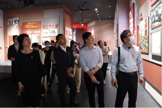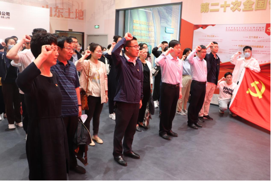 在展览馆中,师生党员们跟随讲解员的脚步,参观了“百年党史是一部围绕土地产权的党的斗争史”“百年党史是一部利用土地要素的党的奋斗史”“百年党史是一部创新土地制度的党的改革史”“百年党史是一部运用土地资源的党的发展史”四个展示区,通过文字介绍、珍贵文物和影视资料,详细了解了中国共产党在不同历史时期土地政策的演变历程和建党百年厚重而光辉的历程,深刻感受到百年来,中国共产党始终坚守以人民为中心的理念,立足中国土地、服务中国人民,以人民的初心、人民的智慧和人民的力量不断深化土地政策改革,不断优化土地要素分配,不断探索土地科学治理,让古老的中华大地焕发出新生机,助伟大的中华民族耕耘出新辉煌。参观结束后,学院党委书记钟秀芳率领师生党员重温入党誓词。